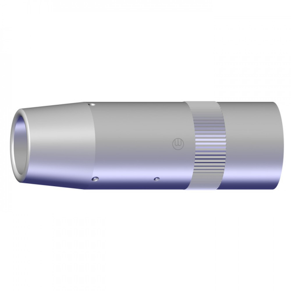 Газове сопло призначене для використання в зварювальних пальниках MIG/MAG. Забезпечує спрямований потік захисного газу до зони зварювання, що сприяє якісному формуванню зварного шва та захисту зварювальної ванни від впливу атмосферного повітря.Сумісне з пальниками системи ABIMIG WT440
