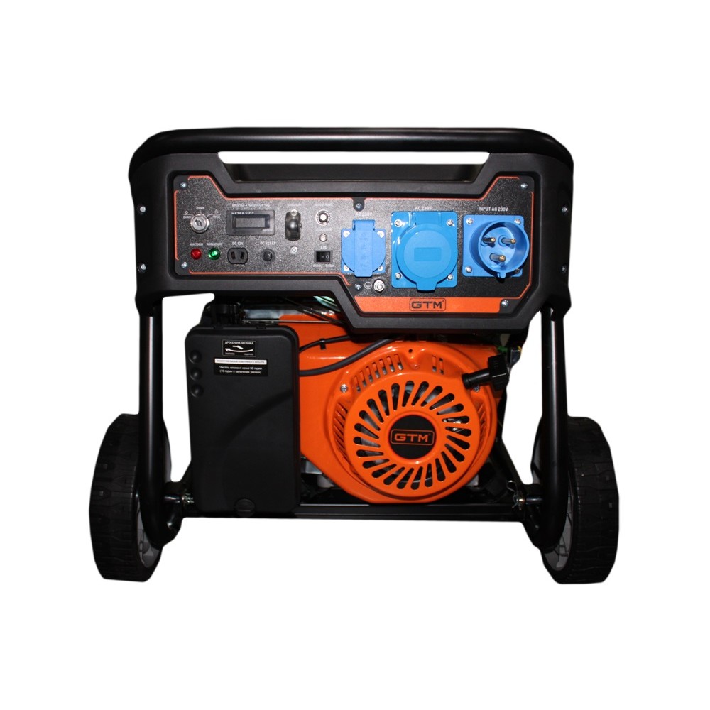 GTM DK5500-L – бензиновий електрогенератор для забезпечення живлення обладнання у разі відсутності електроенергії. Оснащений 4-х тактним двигуном DK190F, який відрізняється економічністю, низьким рівнем викидів та шуму. Максимальна потужність на виході генератора становить 5,5 кВт. Ідеальний варіант для використання у побутових умовах, на дачі або у невеликих магазинах. Під час роботи повного бака палива об'ємом 25 л вистачить до 9,5 години при 100% навантаженні. Вбудований АВР дозволяє налаштувати автоматичне увімкнення генератора при відключенні мережі.