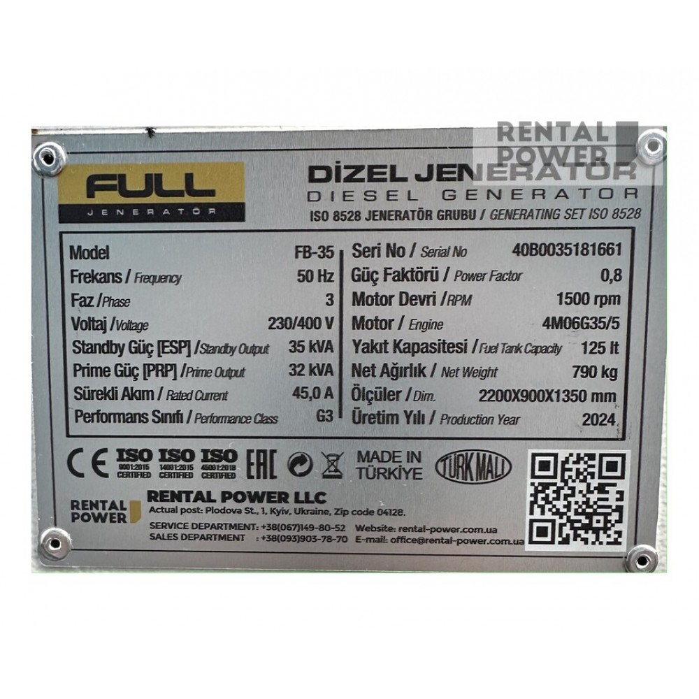 Модель дизельного генератора Full FP 50 (36 кВт) являє собою електростанцію, яка може стати відмінним рішенням при аварійному або плановому відключенні електроенергії у великих масштабах, наприклад, в офісах, магазинах, ресторанах, СТО. Також це обладнання можна купити для робіт на будівельних та ремонтних майданчиках, що знаходяться далеко від основної мережі.