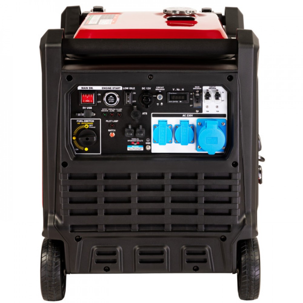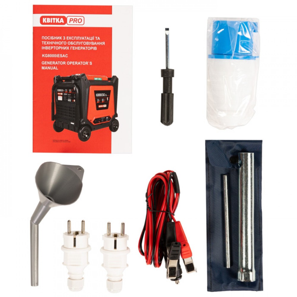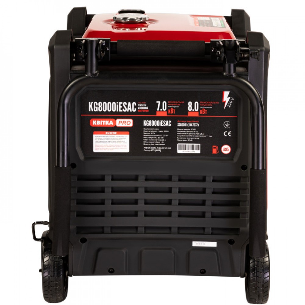 KG8000iESAC — потужний український інверторний електрогенератор. Купити інверторний бензогенератор у виробника вам пропонує Профіцентр КВІТКА.Генератор бензиновий інверторний КВІТКА PRO переваги:Ця модель має можливість підключення блоку ATS, що запускає генератор автоматично.Бензогенератор інвертор KG8000iESAC - це потужна і добре захищена установка. Закрита конструкція корпусу забезпечує стійкість до погодних умов та потенційних механічних впливів.Синхронний альтернатор з обмоткою з міді, який вбудований в генератор бензиновий інверторний КВІТКА PRO відповідає за подачу чистого струму без критичних коливань мережі.При повному заправленні паливного бака бензогенератор інвертор KG8000iESAC здатний на 11 годин безперервної роботи.Генератор бензиновий інверторний КВІТКА PRO має високу мобільність. Для зручності переміщення передбачена розкладна ручка та коліщатка.Бензиновий 4-тактний двигун, вмонтований в бензогенератор інвертор KG8000iESAC здійснює до 3 тисяч обертів за хвилину.Бензогенератор інвертор KG8000iESAC особливості:Модель оснащена системою індикації, що сповіщає про низький рівень масла та потенційні навантаження в роботі.Генератор бензиновий інверторний КВІТКА PRO відноситься до класичних однофазних електрогенераторів.Установка має габаритні розміри 820х640х780 мм.Максимальна потужність установки дорівнює показнику 8 кВт.*Колір або відтінок на фотографії можуть відрізнятися від реального. Параметри та комплектація можуть бути змінені виробником товару без попередження. Магазин не несе відповідальності за зміни, які вніс виробник