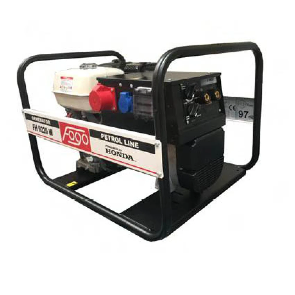 Трифазний бензиновий зварювальний генератор FOGO FH 9220 W з двигуном Honda GX 390 служить автономним джерелом живлення для ручного дугового зварювання, а також джерелом струму для заміського будинку, дачі або інших електроприладів. Номінальна потужність генератора: 6,24 кВт (3 фази) та 4 кВт (1 фаза). Номінальний струм 1-ї фази 17,4 А. Діапазон зварювального струму від 40 до 220А. У генератор вбудована система стабілізації напруги (AVR).