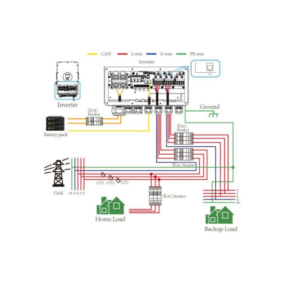 Інвертор також підтримує підключення вітрогенератора і дозволяє використовувати два методи для розширення існуючої фотоелектричної системи змінного струму до системи з накопиченням енергії. Він підтримує паралельне підключення до 16 трифазних пристроїв і функцію "Час використання", яка дозволяє налаштовувати 6 різних періодів для зарядки та розрядки акумулятора.