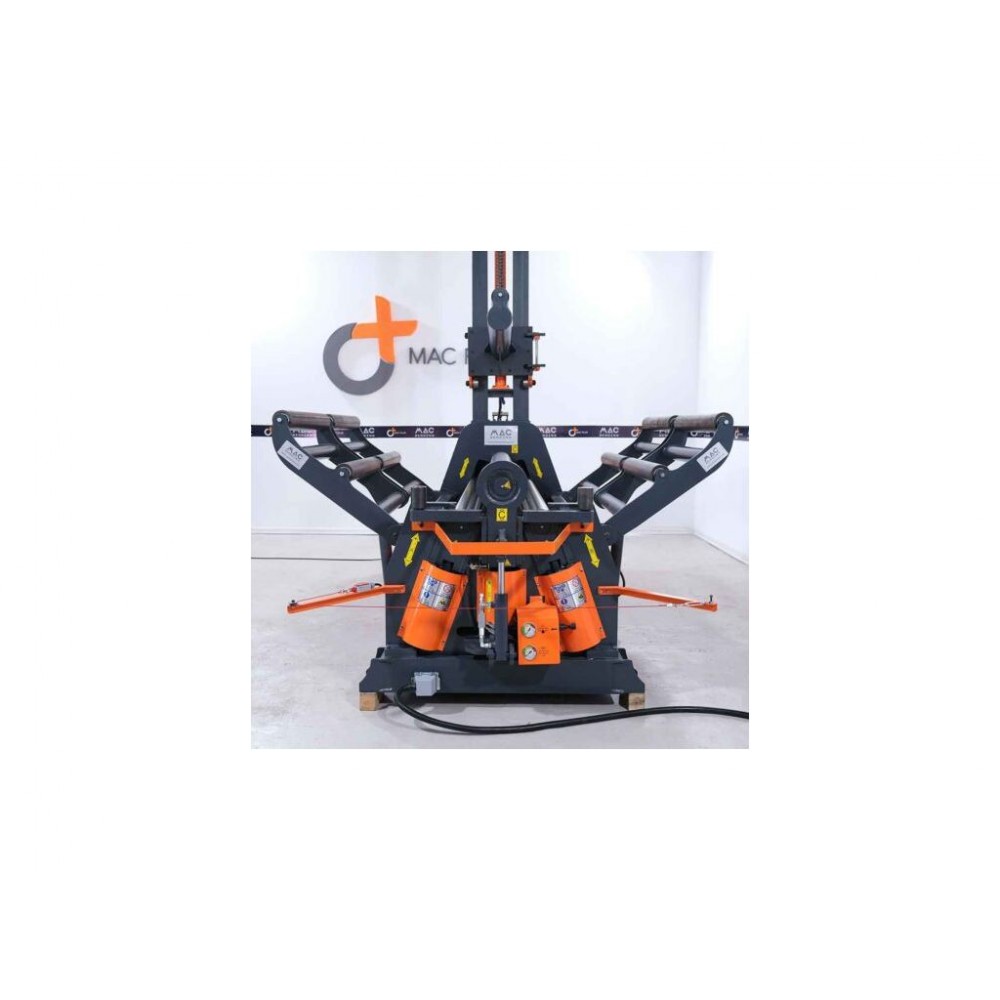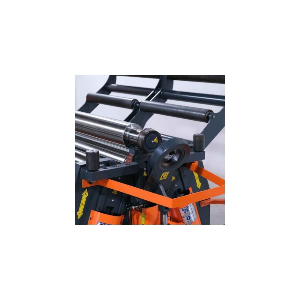Бічні валки з'єднані з корпусом гідравлічними поршнями, які переміщаються вгору і вниз по прямій лінії. Завдяки системі лінійних напрямних відстань між верхнім і нижнім валками більша, ніж у будь-якій іншій системі, що дає змогу згинати різні матеріали з різною товщиною (сильне попереднє згинання і згинання важких листів).