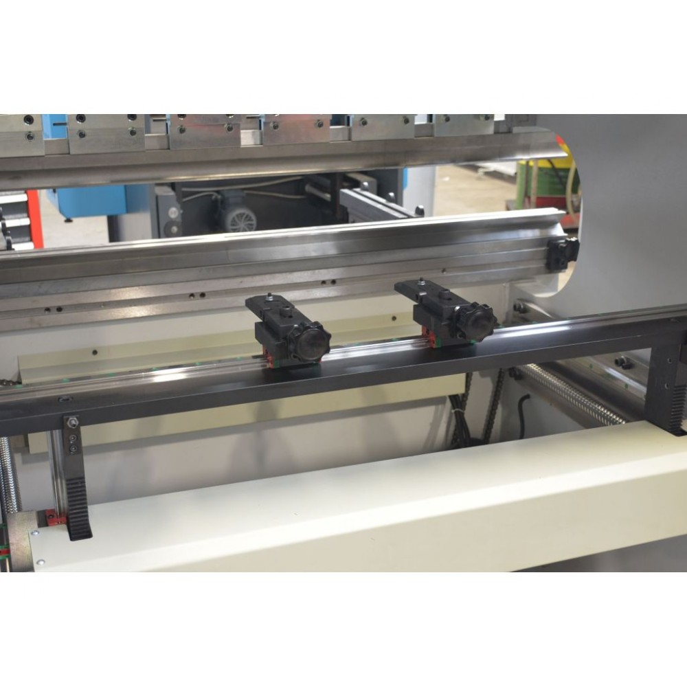 - Моторизований задній упор по осі X, який можна запрограмувати з лінійним ковзанням і управлінням з ЧПК, відстань 600 мм і точність обробки 0,2 мм.
