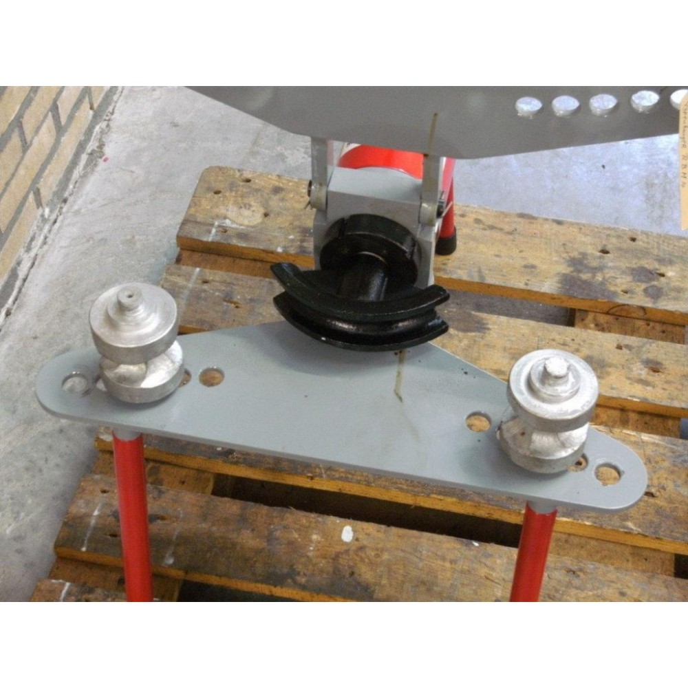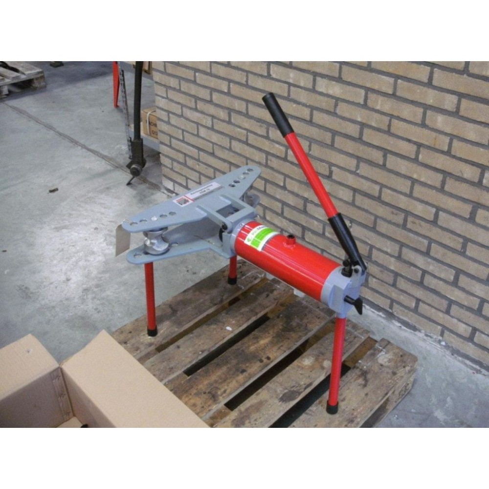 Гідравлічний циліндр має функцію самоочищення, яка запобігає накопиченню забруднень і зменшує потребу в його частому обслуговуванні. Шарнірна відкидна рама забезпечує швидке та зручне розміщення заготовки на верстаті. Міцна сталева конструкція на трьох ніжках мінімізує вібрації і робить цей гідравлічний верстат для згинання труб стабільним на будь-якій поверхні.