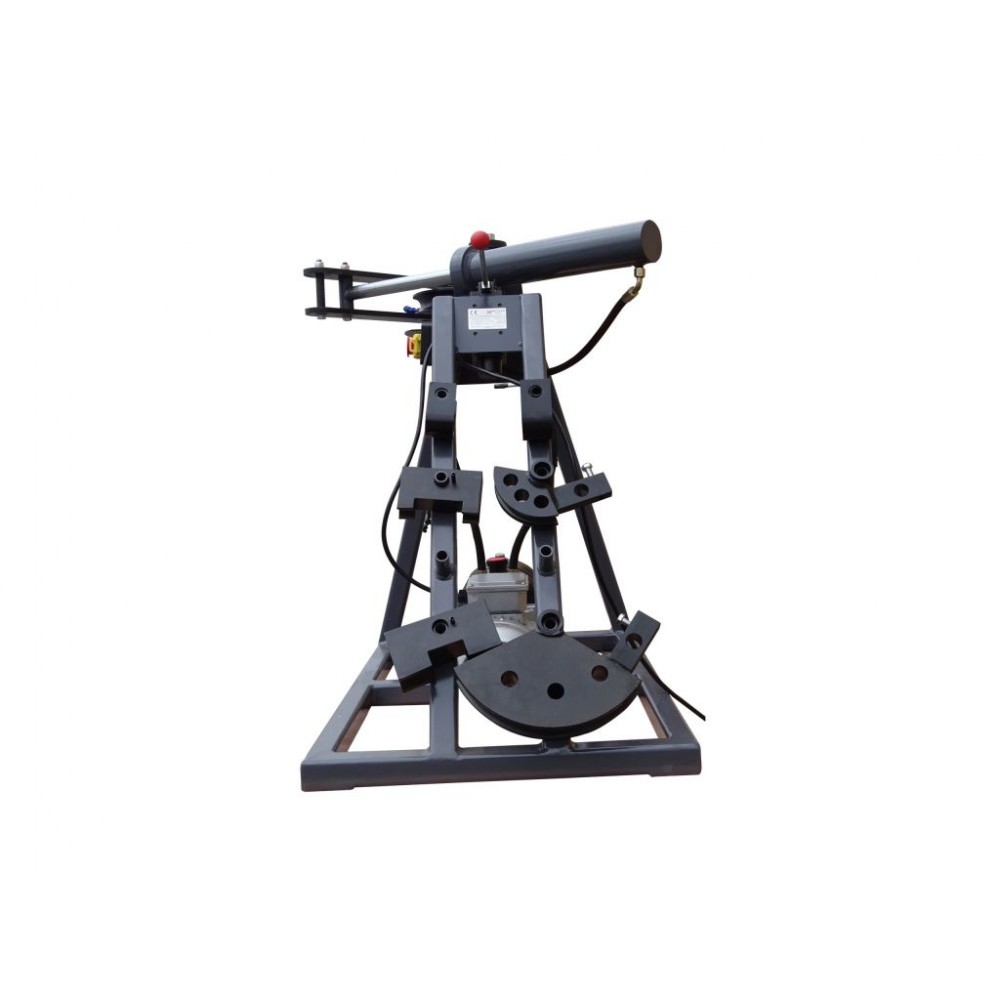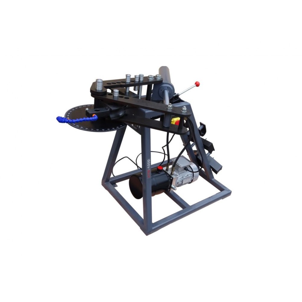 Гідравлічний верстат Metcor HTB1000 - це надійне обладнання для згинання сталевих труб круглого перерізу, яке ефективно використовується для професійного монтажу та ремонту трубопроводів. Працює на базі трифазного двигуна потужністю 550 Вт. Оснащений потужною гідравлічною системою, яка забезпечує велике зусилля при мінімальній витраті часу. Згинання здійснюється за допомогою системи важелів, що приводиться в дію гідравлічним циліндром. Згинання труби навколо оправки відповідного розміру забезпечує точність кута і радіуса згину. Кут згинання становить 0-120°, а при використанні додаткових прес-форм може сягати 240°.