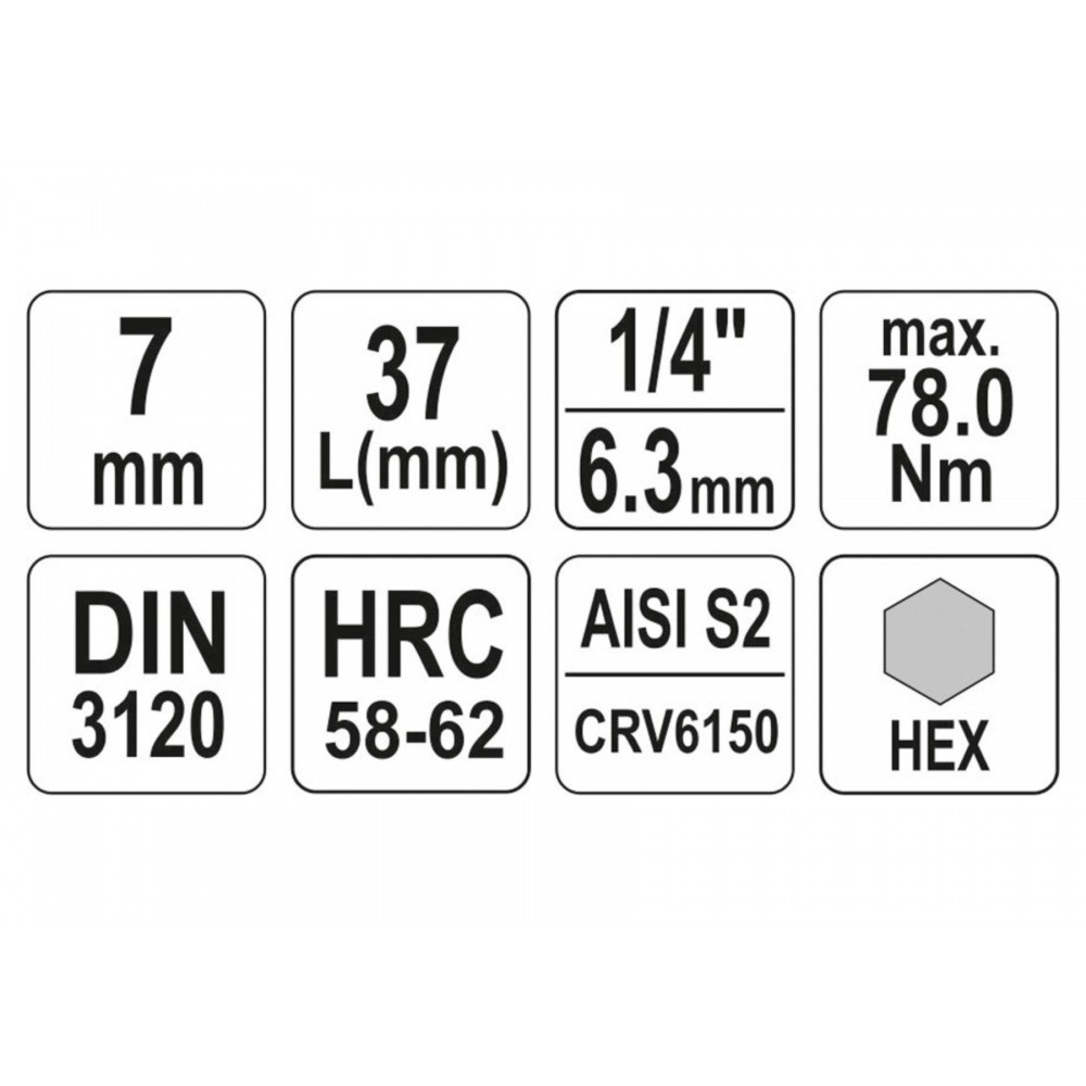 Головка торцева з викрутковою насадкою HEX YATO 1/4" H7 x 37 мм