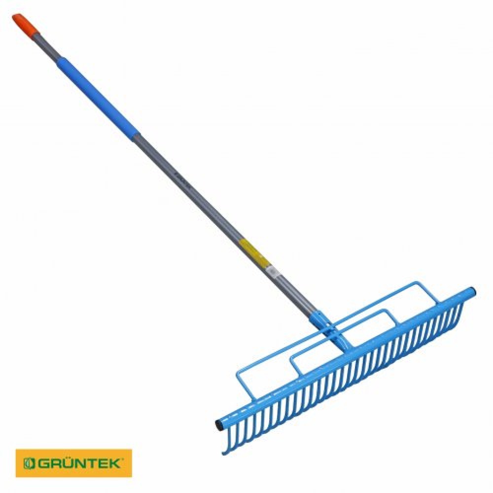Граблі газонні GRUNTEK RR-600/140S 32 зубця зі сталевою ручкою – ручний інструмент для згрібання скошеної трави, видалення садового сміття на газонах тощо. Поставляється з металевою ручкою 140 см.