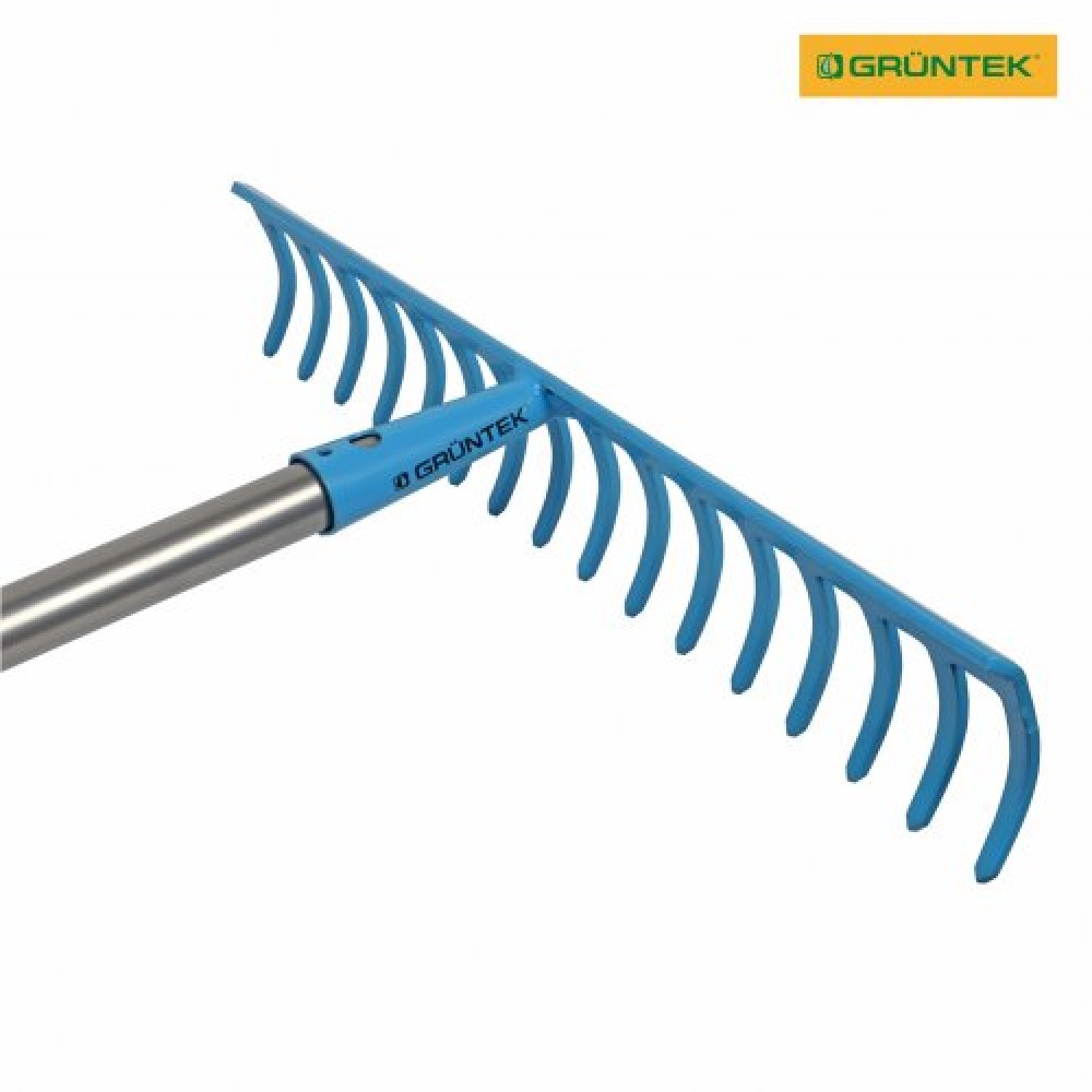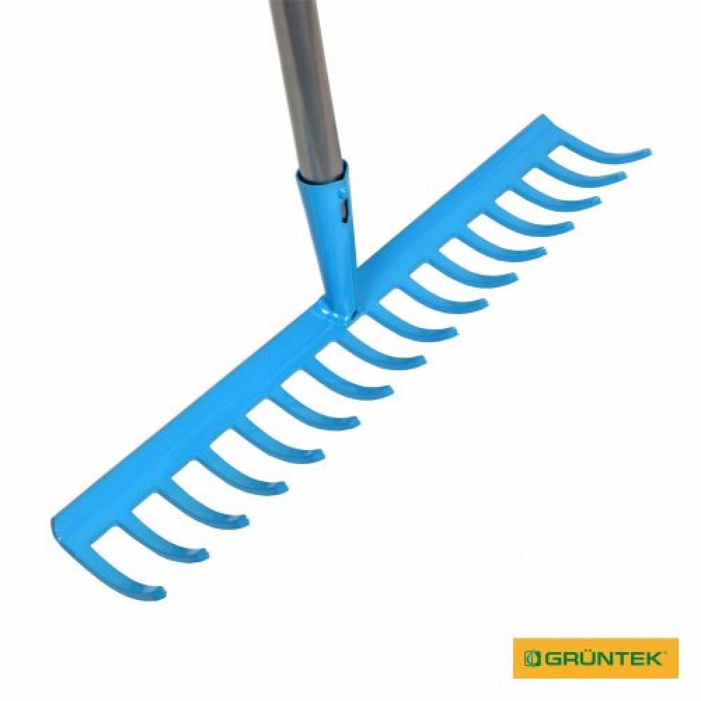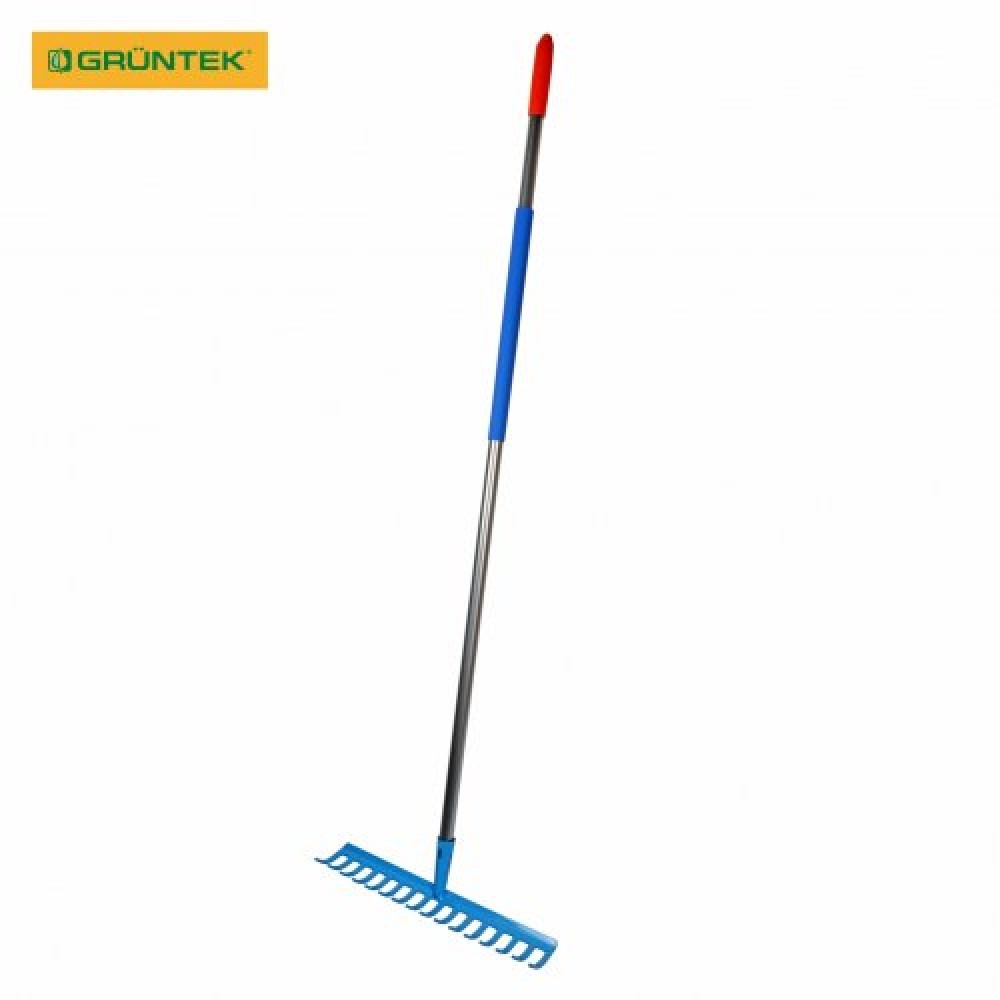 Граблі садові GRUNTEK GR-450/140S 16 зубців зі сталевою ручкою – ручний інструмент для прибирання в саду, розбивання грудок ґрунту, згрібання скошеної трави тощо. Поставляється із металевою ручкою довжиною 140 см.