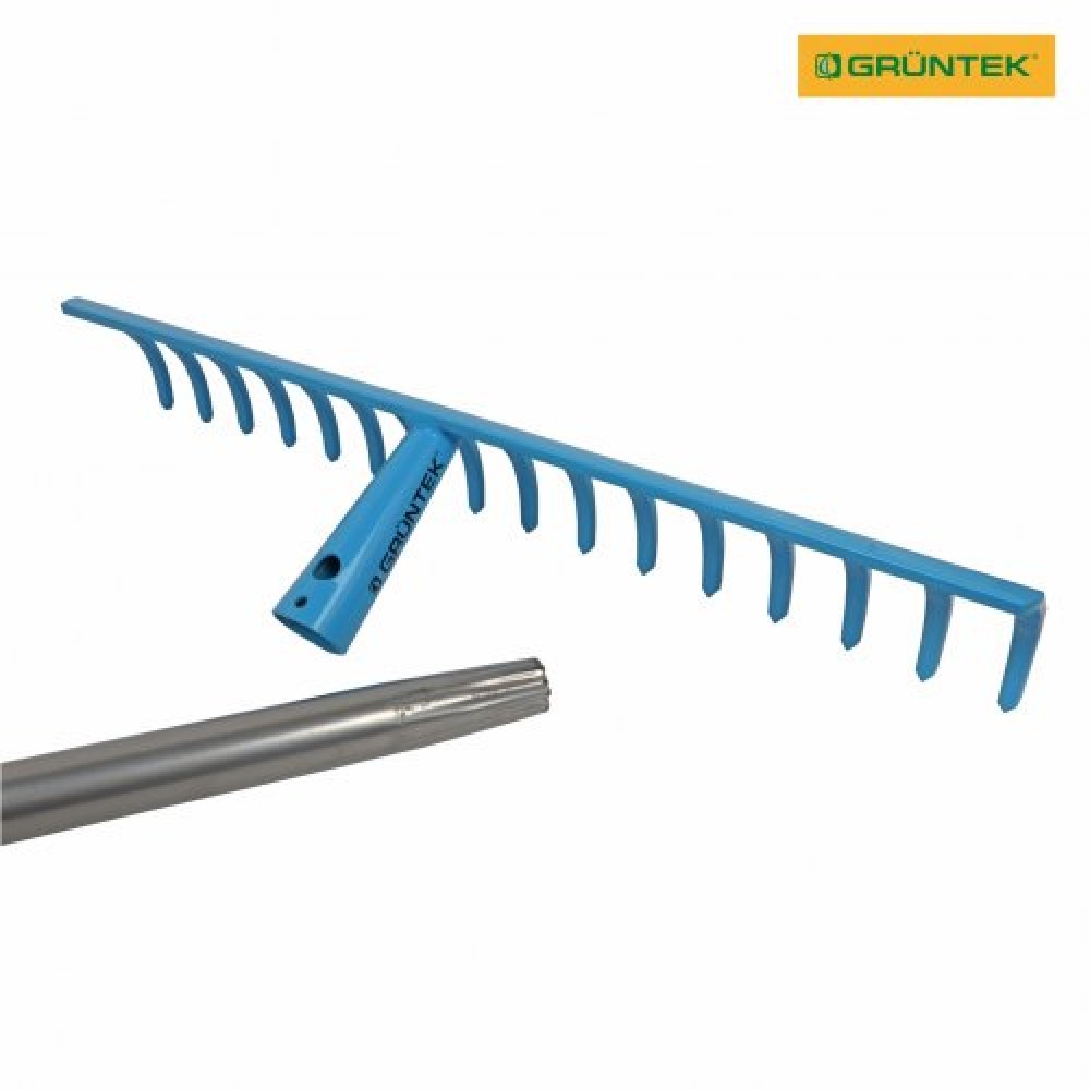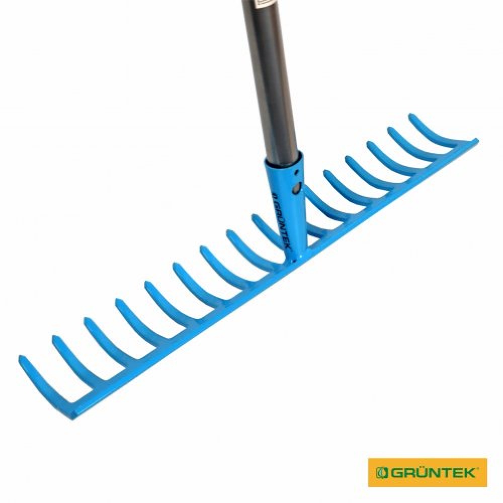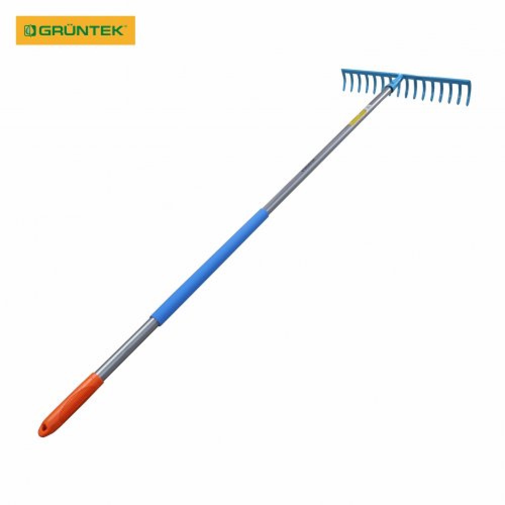 Граблі садові GRUNTEK GR-450/180S 16 зубців зі сталевою ручкою – ручний інструмент для прибирання в саду, розбивання грудок ґрунту, згрібання скошеної трави тощо. Поставляється із металевою ручкою довжиною 180 см.