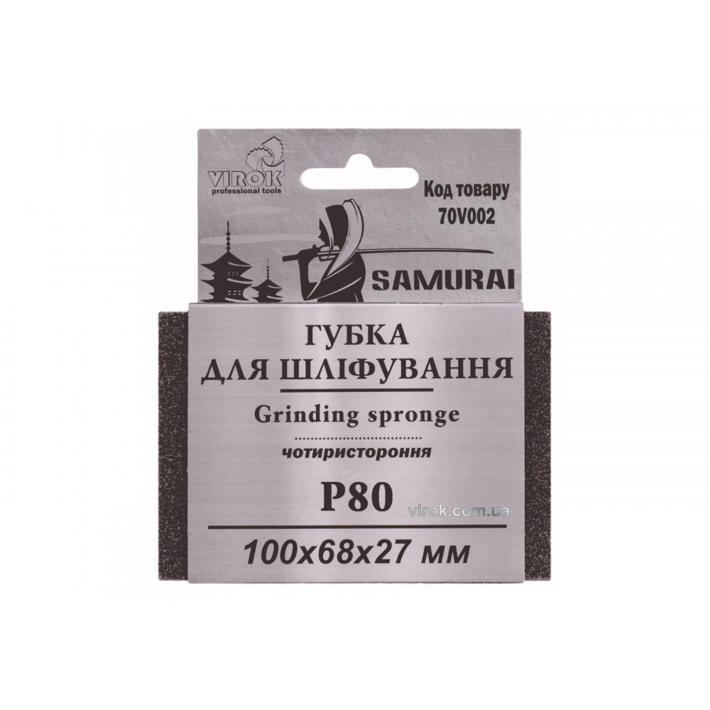 Губка для шліфування 4-стороння SAMURAY ТМ "VIROK"; Р80, 100х68х27 мм