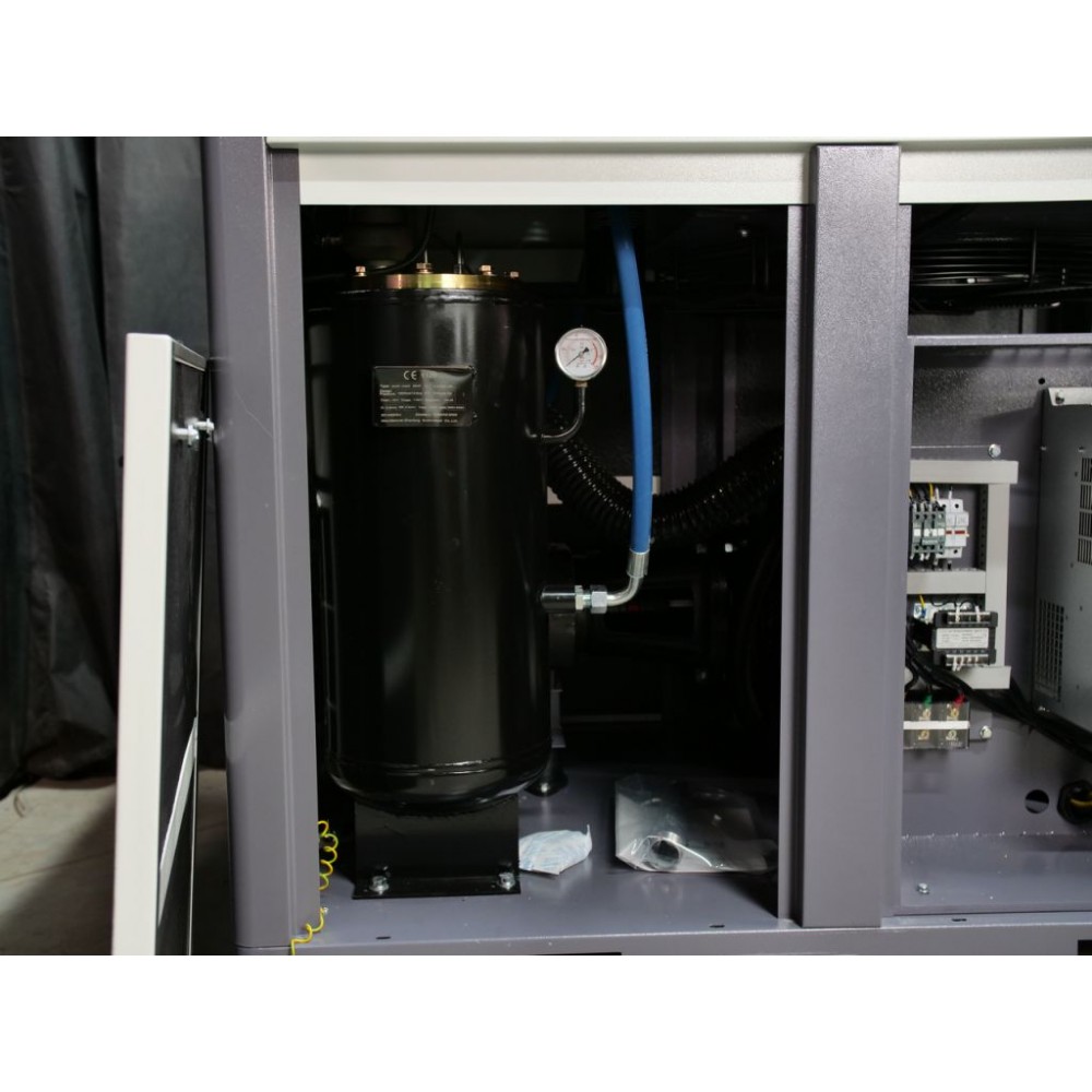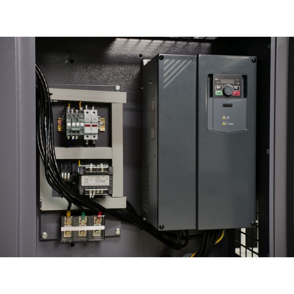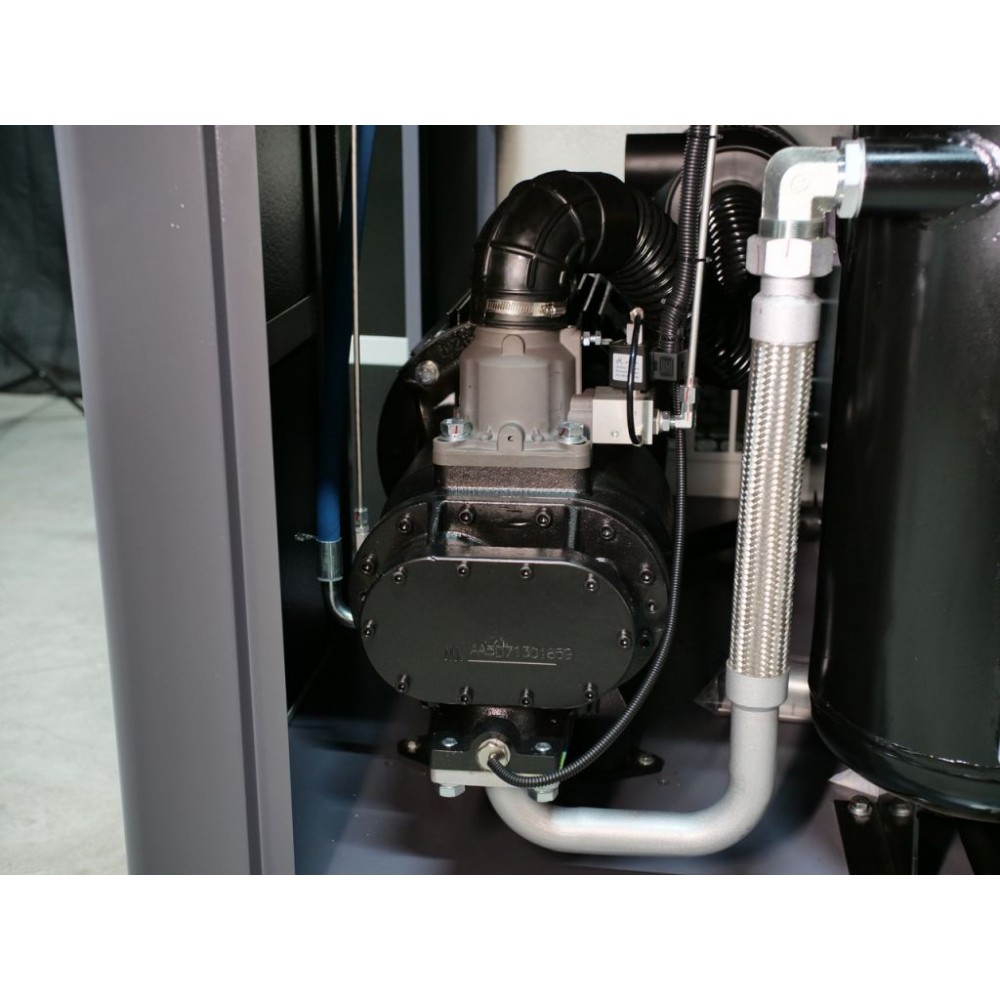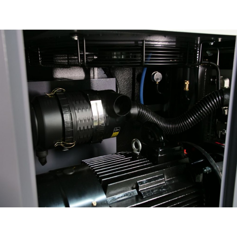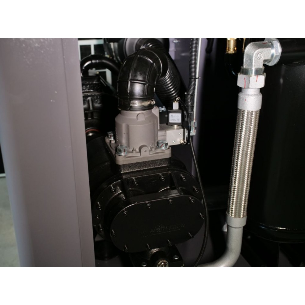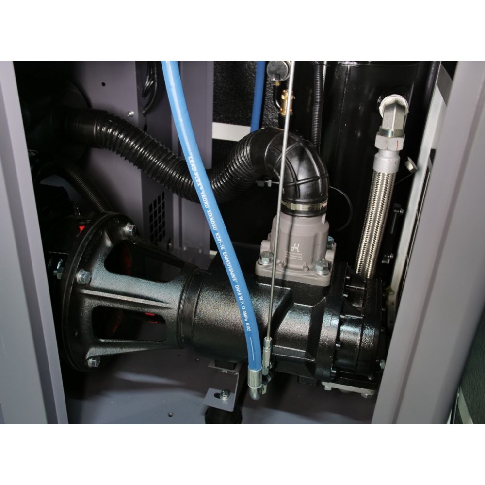 Корпус виготовлений зі стійкої до корозії і скручування товстостінної сталі і має знімні панелі для легкого доступу до внутрішніх компонентів. Завдяки якісній шумоізоляції компресор працює дуже тихо (рівень шуму - 70±2 дБ(А)), що дозволяє встановлення у виробничому приміщенні без дискомфорту для персоналу. Також цей інверторний компресор для виробництва оснащений модулем Wi-Fi, завдяки якому можна віддалено відстежувати параметри його роботи через спеціальний додаток.