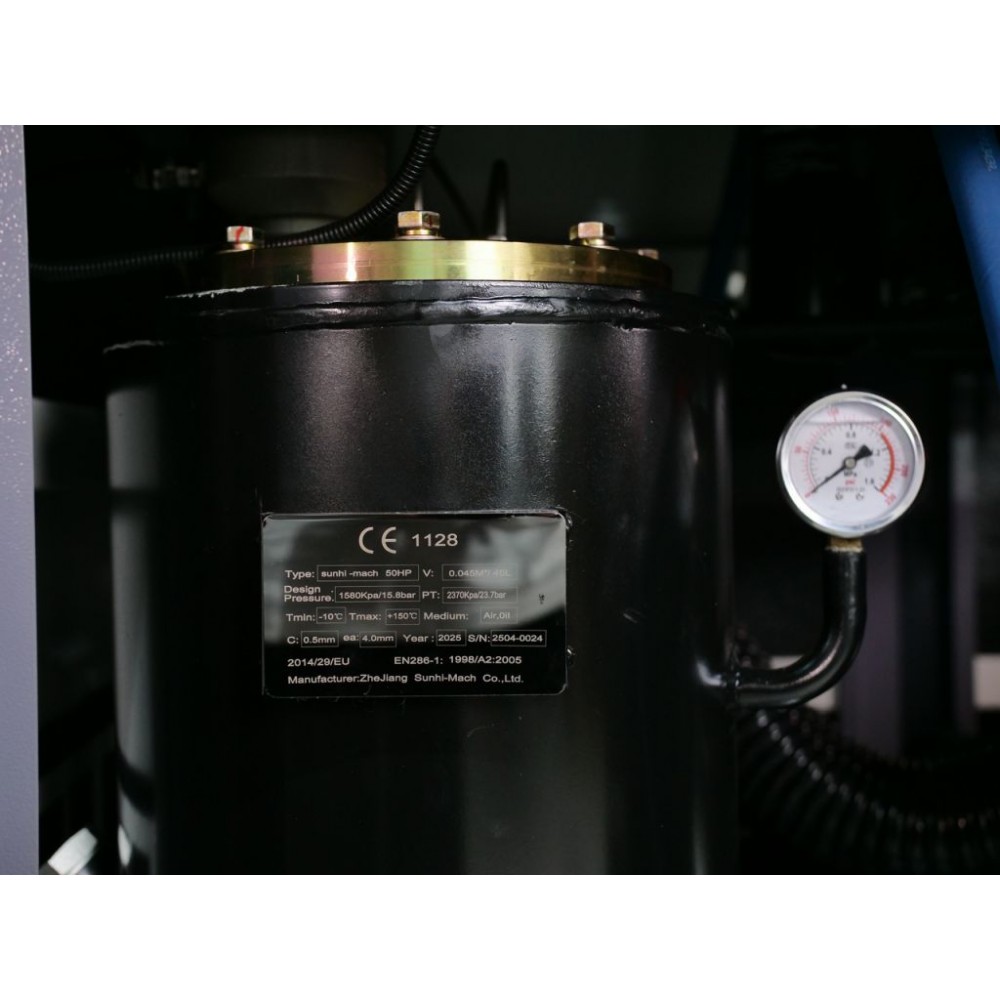 Гвинтовий компресор Mast SH-50 Inverter Wi-Fi - це промислове обладнання з продуктивністю 5600 л/хв та робочим тиском 10 Бар, яке забезпечує стабільну, рівномірну подачу великої кількості стисненого повітря для живлення кількох споживачів одночасно. Оснащений гвинтовим блоком від компанії Baosi, яка є одним із найкращих у світі виробників компресорних комплектуючих. Асинхронний двигун з захистом IP 55 та потужністю 37 кВт зберігає високу продуктивність навіть при інтенсивних навантаженнях. Завдяки прямій передачі між двигуном і гвинтовим блоком компресор має високу енергоефективність і мінімум втрат потужності. Інверторна технологія дозволяє зекономити до 35% електроенергії.