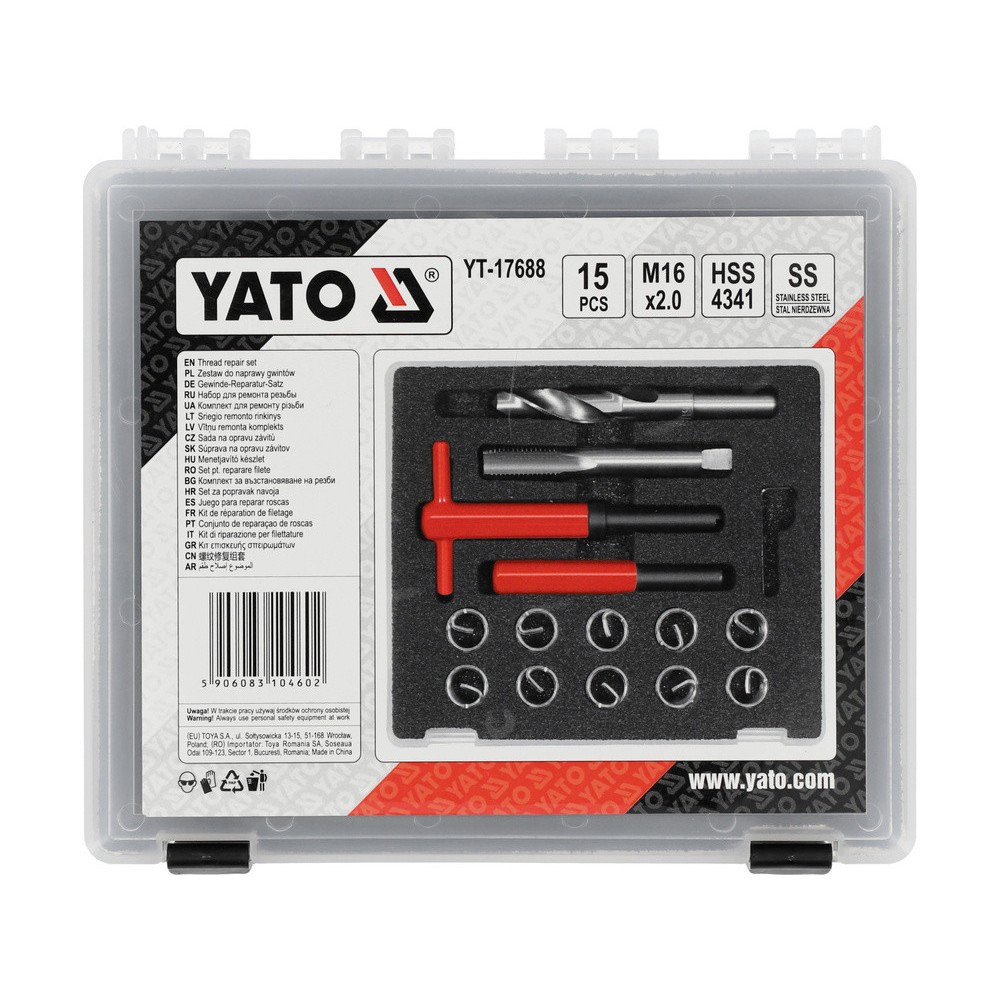 Інструменти і вставки для ремонту різьби YATO М16 х 2.0 мм, компл. 15 шт.