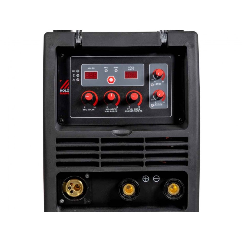 Інверторний зварювальний апарат Holzmann EMSA315 - це професійне обладнання, що поєднує системи зварювання електродом (ММА) та інертним газом (MIG). Інверторна технологія забезпечує стабільний струм і знижене споживання електроенергії. Цифровий дисплей зварювального струму і напруги гарантує надійний контроль над робочим процесом.
