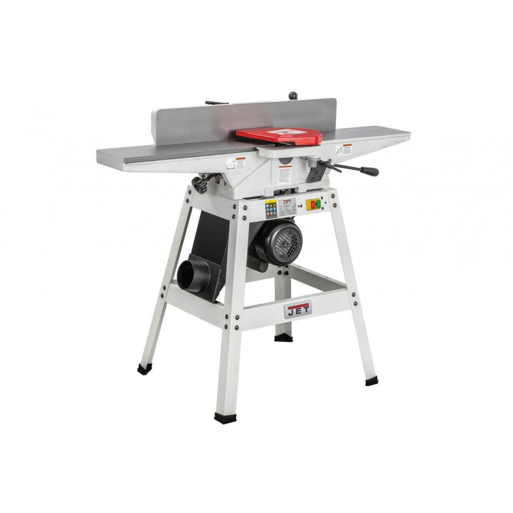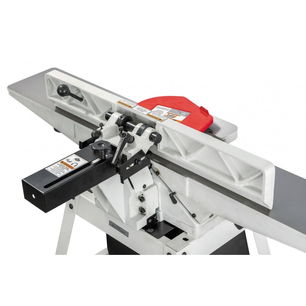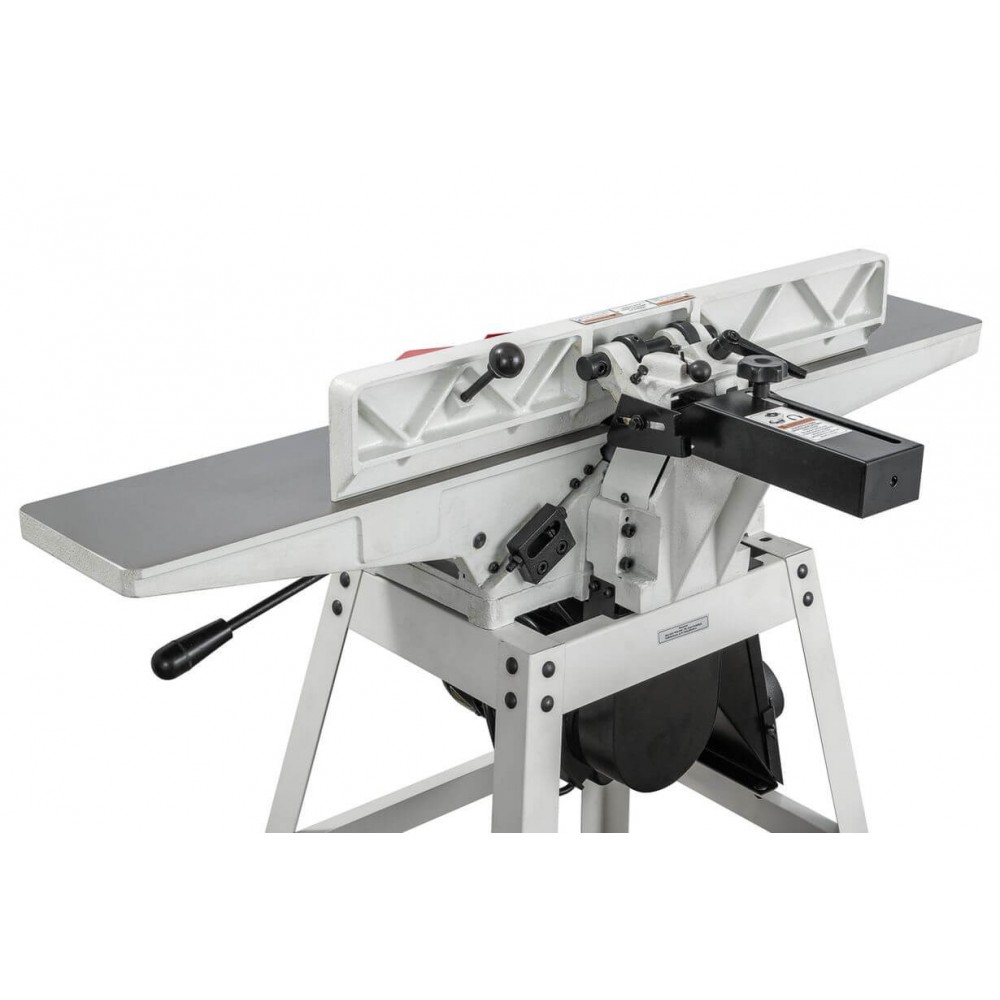JJ-6HH OS — фуговальный станок для любительского применения с длинными чугунными столами и сегментированным вылом helical. Имеет классический дизайн с регулировкой высоты столов по наклонным направляющим. Базируется на открытой подставке, в пространстве которой расположен асинхронный однофазный двигатель. Привод ножевого барабана одним клиновым ремнем. Регулируемый фуговальный упор и его кронштейн сделаны из массивных чугунных отливок. Сдвижной защитный экран алюминиевый. Удаление стружки производится через 100-миллиметровый патрубок и кожух, расположенные снизу станка.