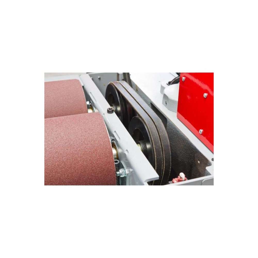 Точне регулювання висоти другого барабану Висока якість одержуваної поверхні завдяки точному регулюванню висоти другого барабана в залежності від зерна абразивної стрічки та висока продуктивність шліфування. Абразивна стрічка не приклеюється, а просто накручується на барабан і фіксується з обох боків. |