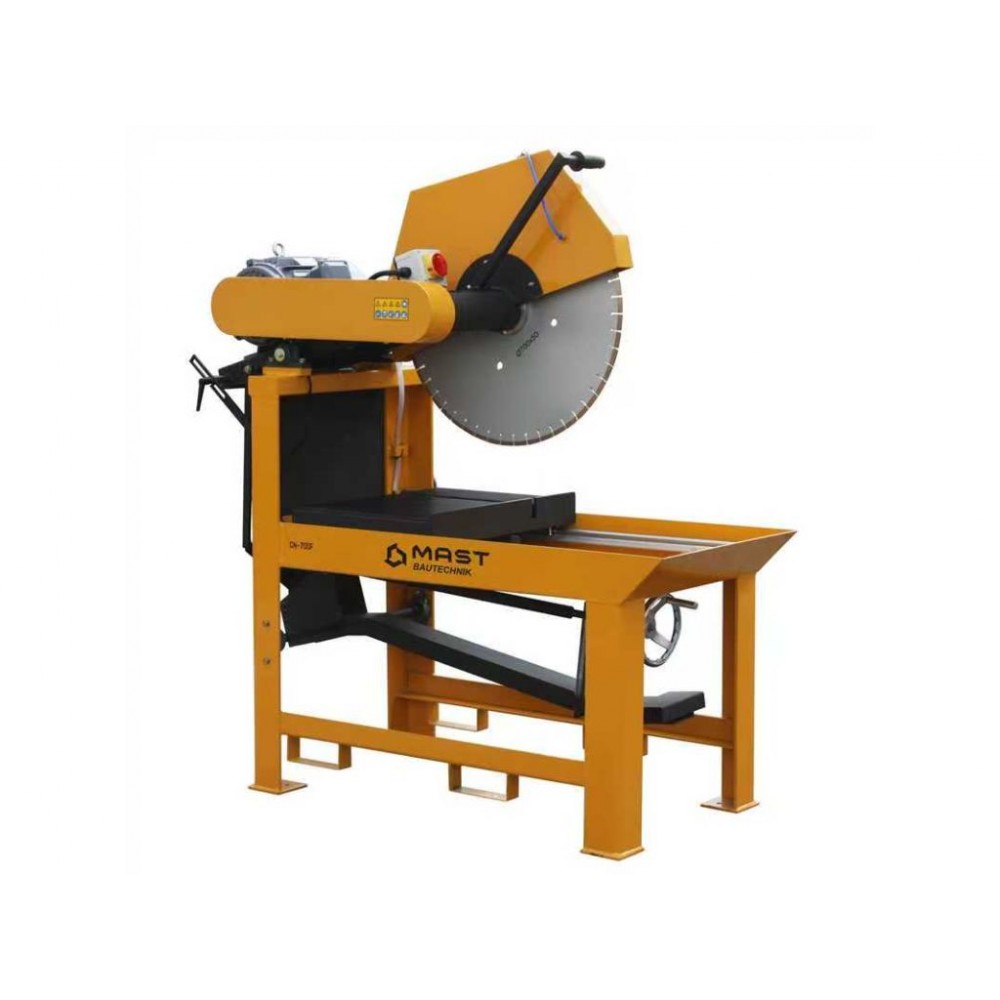 Каменерізний верстат MAST Bautechnik MT-SKM700_380V - це професійне обладнання для різання каменю, цегли, бетону, бруківки, різних видів плитки та інших будівельних матеріалів висотою до 290 мм за один прохід. Оснащений витривалим трифазним двигуном потужністю 5,5 кВт і універсальним алмазним диском діаметром 700 мм, що забезпечують високопродуктивну і стабільну роботу навіть при високих навантаженнях та ефективне розпилювання досить товстих матеріалів. Максимальна глибина різу становить 290 мм, довжина різання - 650 мм.