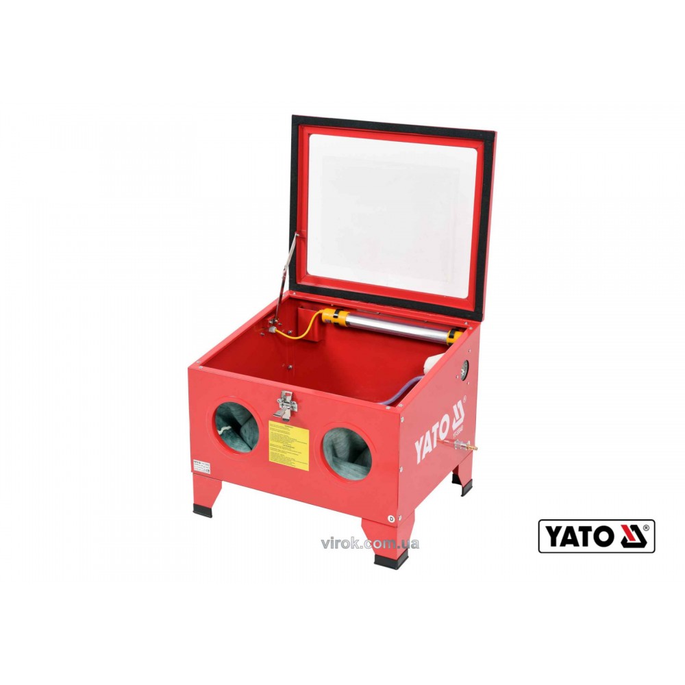Пневматична піскоструйна камера YATO YT-55840 призначена для швидкого та зручного очищення від іржі, фарби чи бруду за допомогою циркулюючого абразиву. Корисна для автомобільних майстерень і на промислових підприємствах.