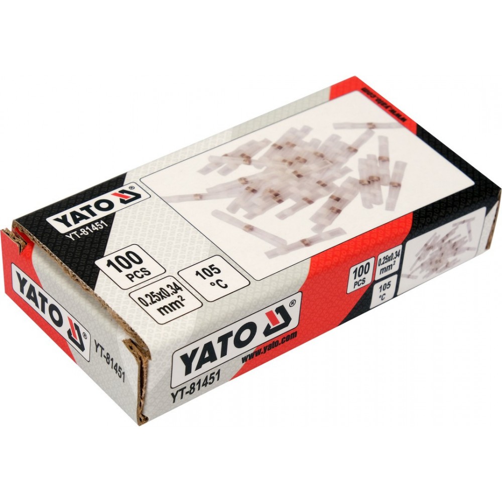 Кембрики термоусадні при t≤ 105°C з припоєм YATO, прозорі, для провідників 0.25- 0.34 мм², 100 шт