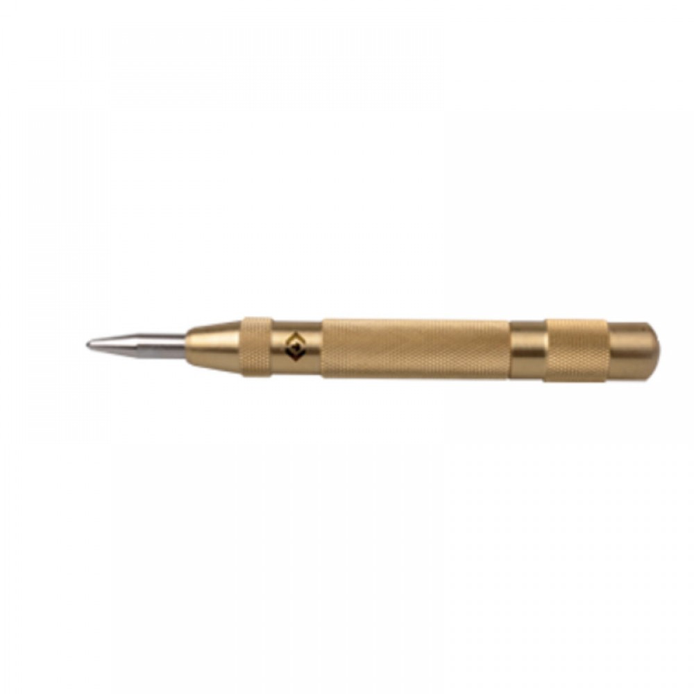 Кернер 1,7x155 мм, автоматичний KING TONY 76807-06. Призначений для розмічувальних робіт, наприклад, нанесення міток для центрування свердла. Особливість кернера – автоматичний механізм, що дозволяє наносити мітки без застосування молотка. Насікання на корпусі кернера допомагає надійно утримувати інструмент під час роботи. Технічні характеристики Загальна довжина: 155 мм Діаметр наконечника: 1,7 мм Матеріал корпусу: латунь Матеріал наконечника: сталь S2