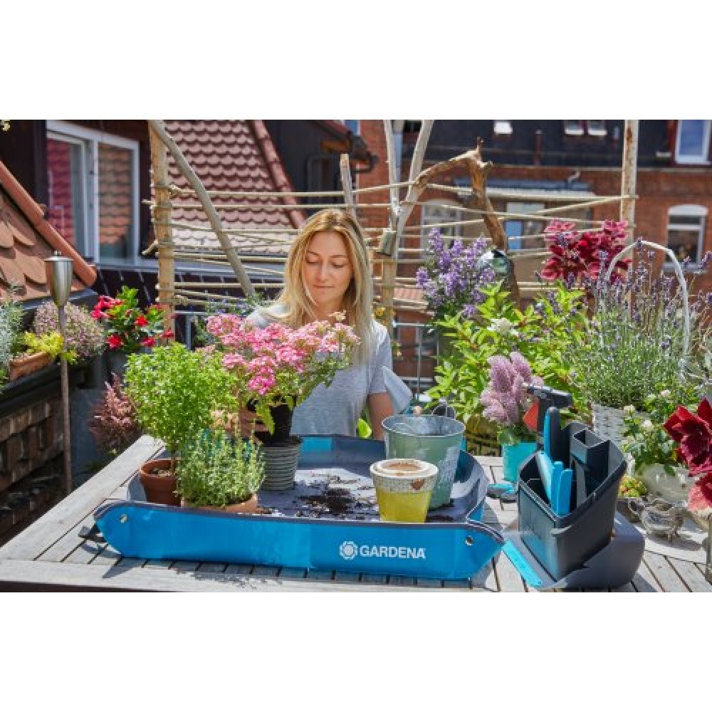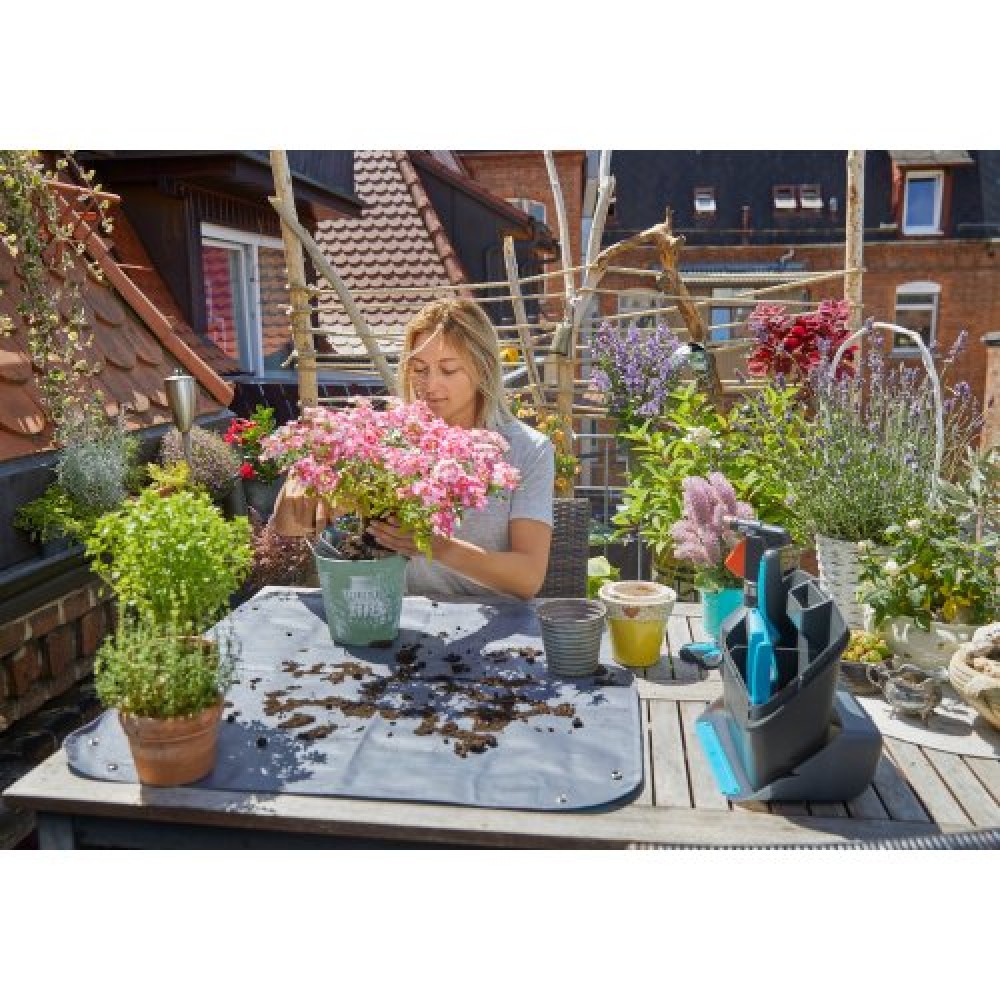 Килимок Gardena City Gardening Mat S 80x80 см для садівництва – призначений для захисту поверхонь під час пересадки, висадки горщикових рослин. Є оптимальним захистом балконів, терас, столів від бруду, ґрунту, обрізків рослин, вологи. Значно спрощує процес прибирання після роботи з рослинами.