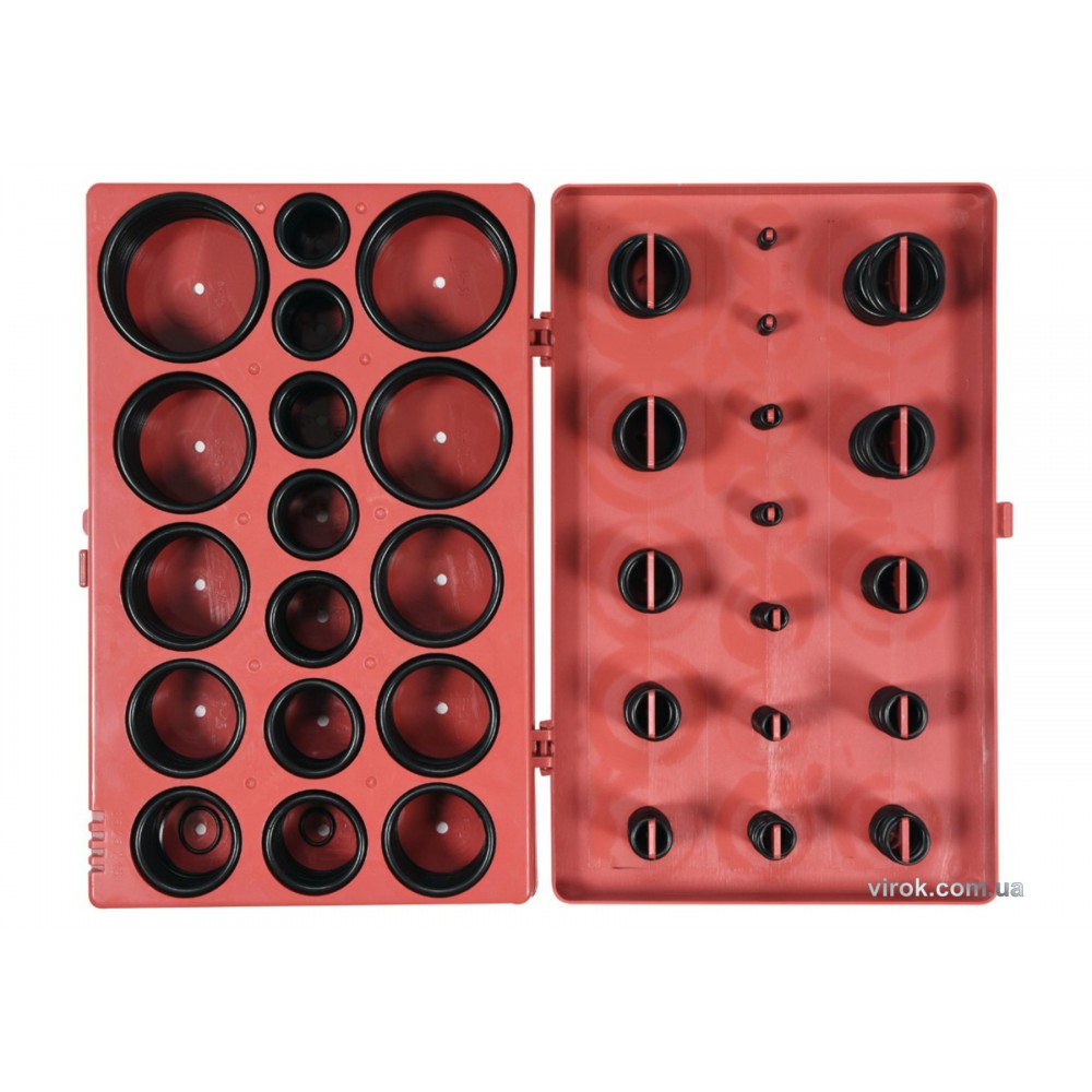 Набір з 419 ущільнювальних кілець з NBR. У набір входять розміри від 3х1,5 мм до 50х3,5 мм. Все було поміщено в зручний пакет типу «сортер».