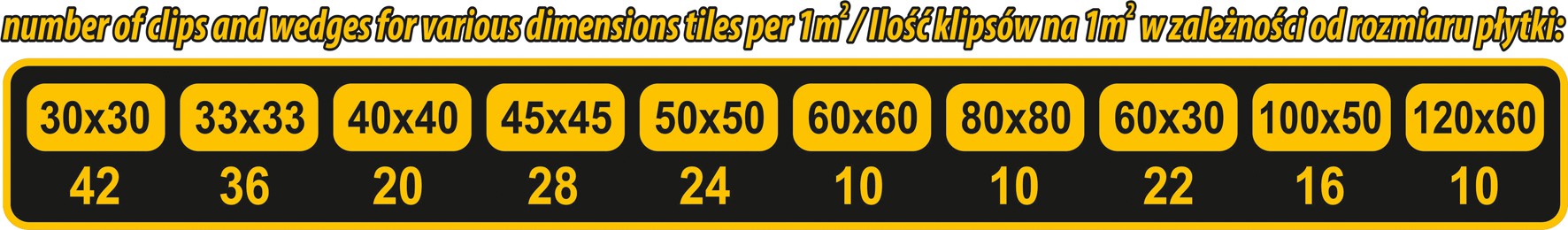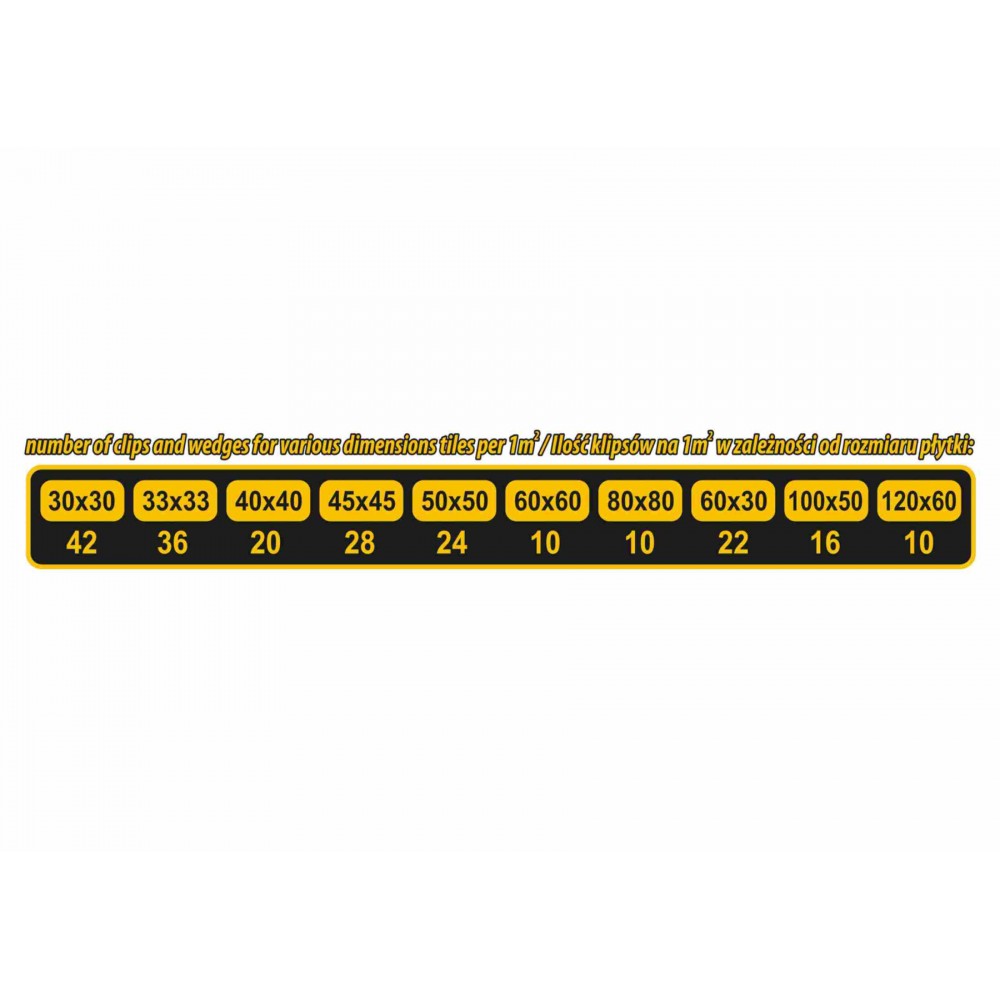 Кількість кліпс на кв.м в залежності від розміру плитки: