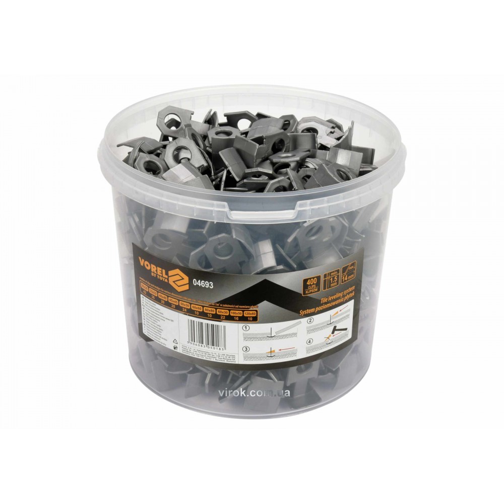 Кліпси для викладання керамічної плитки VOREL 7-15 мм фуга 1.5 мм 400 шт