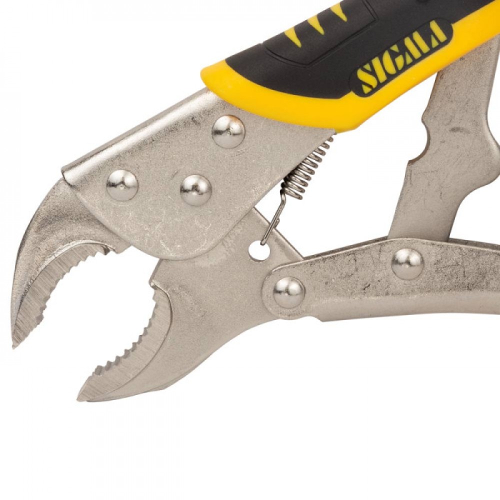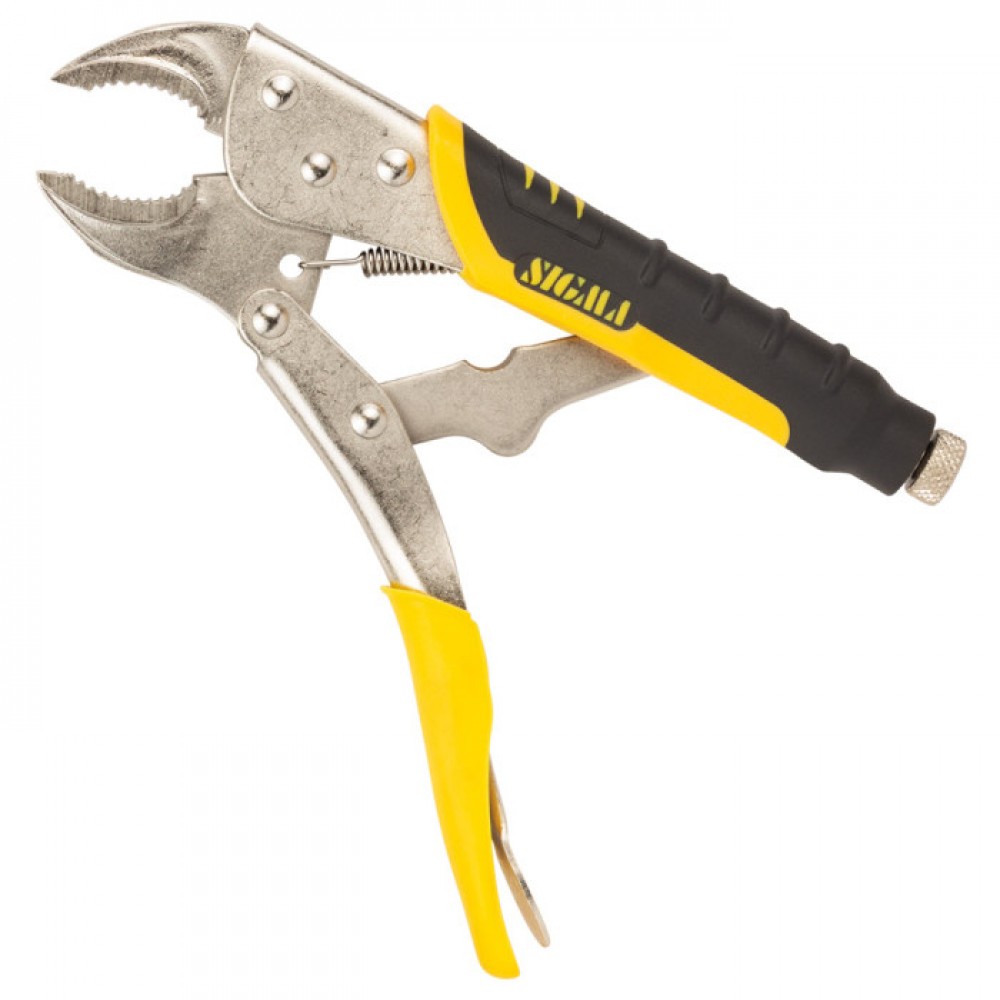Кліщі затискні універсальні напівкруглі 250 мм CrV SIGMA призначені для фіксації предметів під час проведення слюсарно-монтажних або зварювальних робіт. Заокруглена форма робочої частини чудово утримує деталі різної форми, від труби до листа металу. Виготовлені з якісної хромованадієвої сталі (CrV). Додаткове нікельоване покриття забезпечує стійкість до корозії та утворення іржі. Регулювальний гвинт, для розведення губок і кінцевої надійної фіксації, забезпечує точне налаштування кліщів під різну товщину деталей. Спусковий механізм дає можливість миттєвого відкриття кліщів та швидкого зняття з деталей. Обгумоване покриття рукояток запобігає мимовільному зісковзуванню інструменту і забезпечує надійну фіксацію в руці.Характеристики:CrV сталь Регулювальний гвинт Надійна фіксація деталей Обгумовані рукоятки Захист від корозії Зручність у використанні