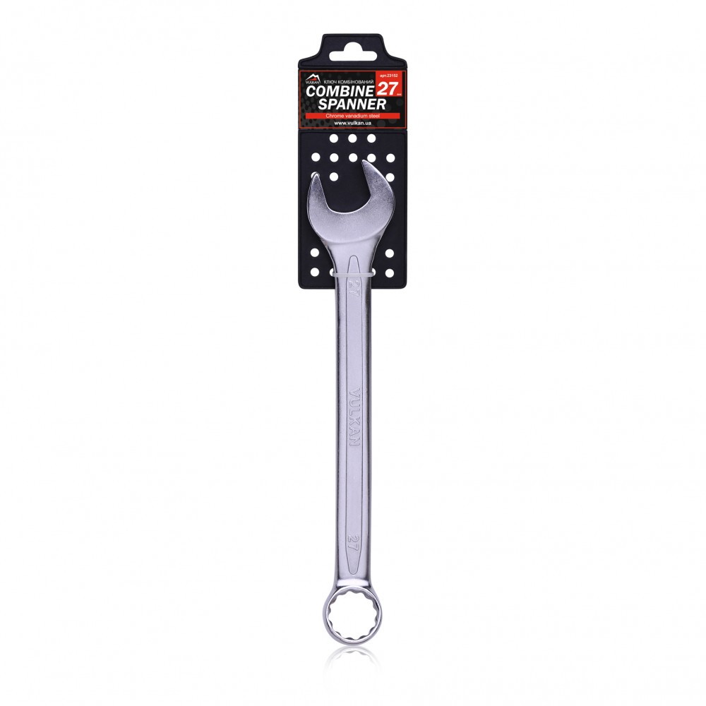 Ключ комбінований Vulkan 27 мм є слюсарним інструментом ріжково-накидного типу, який призначений для використання в сфері тех. обслуговування та виконання різних ремонтних операцій. Міцна конструкція розрахована для професійного використання та тривалих інтенсивних навантажень.