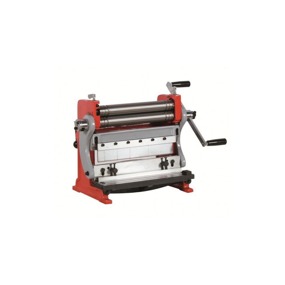 Управління здійснюється за допомогою довгих важелів з антиковзаючими наконечниками, які дають змогу знизити зусилля оператора. При обертанні важеля в рух приводяться всі 3 вузли. Цей верстат для листового металу має міцну і зносостійку чавунну конструкцію, а завдяки невеликому розміру є відмінним варіантом для майстерень з обмеженим робочим простором.