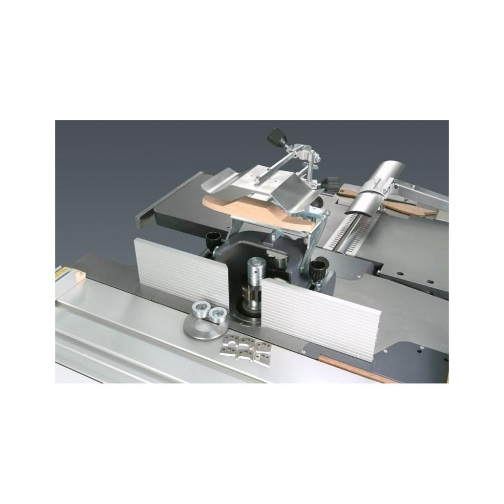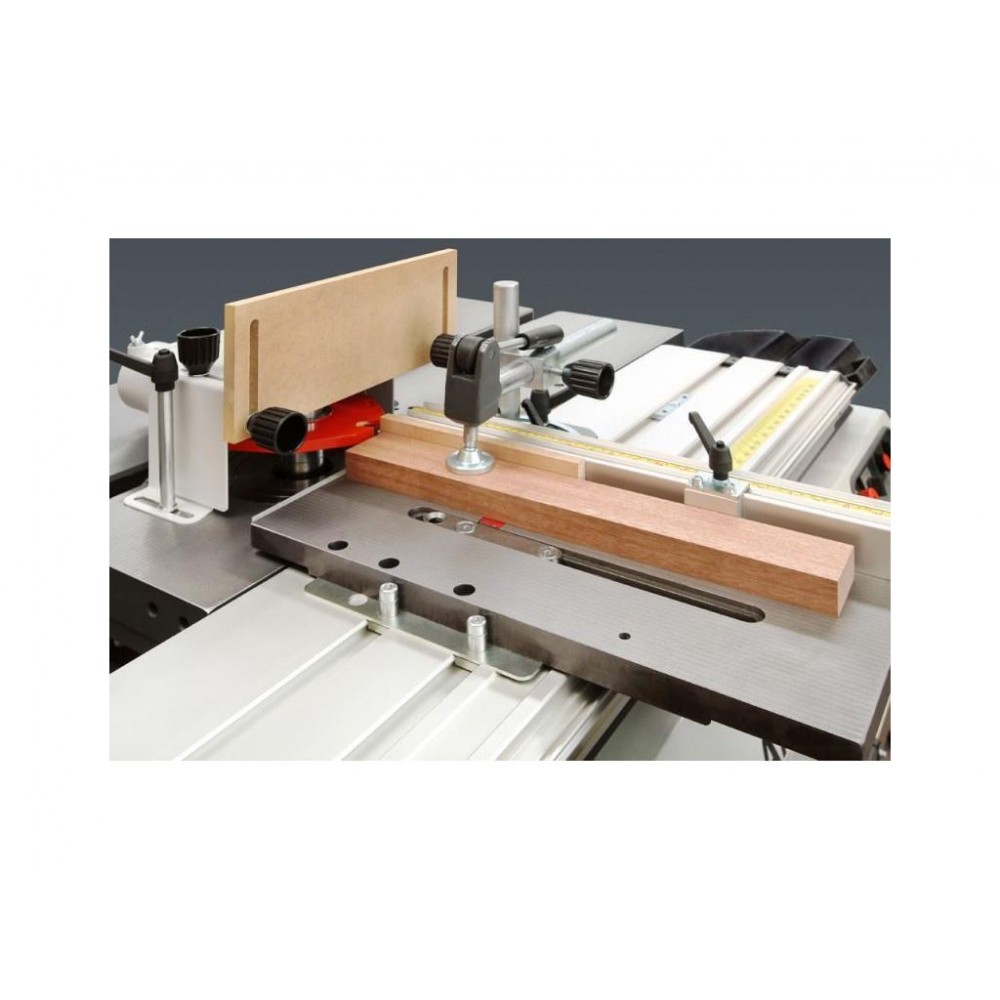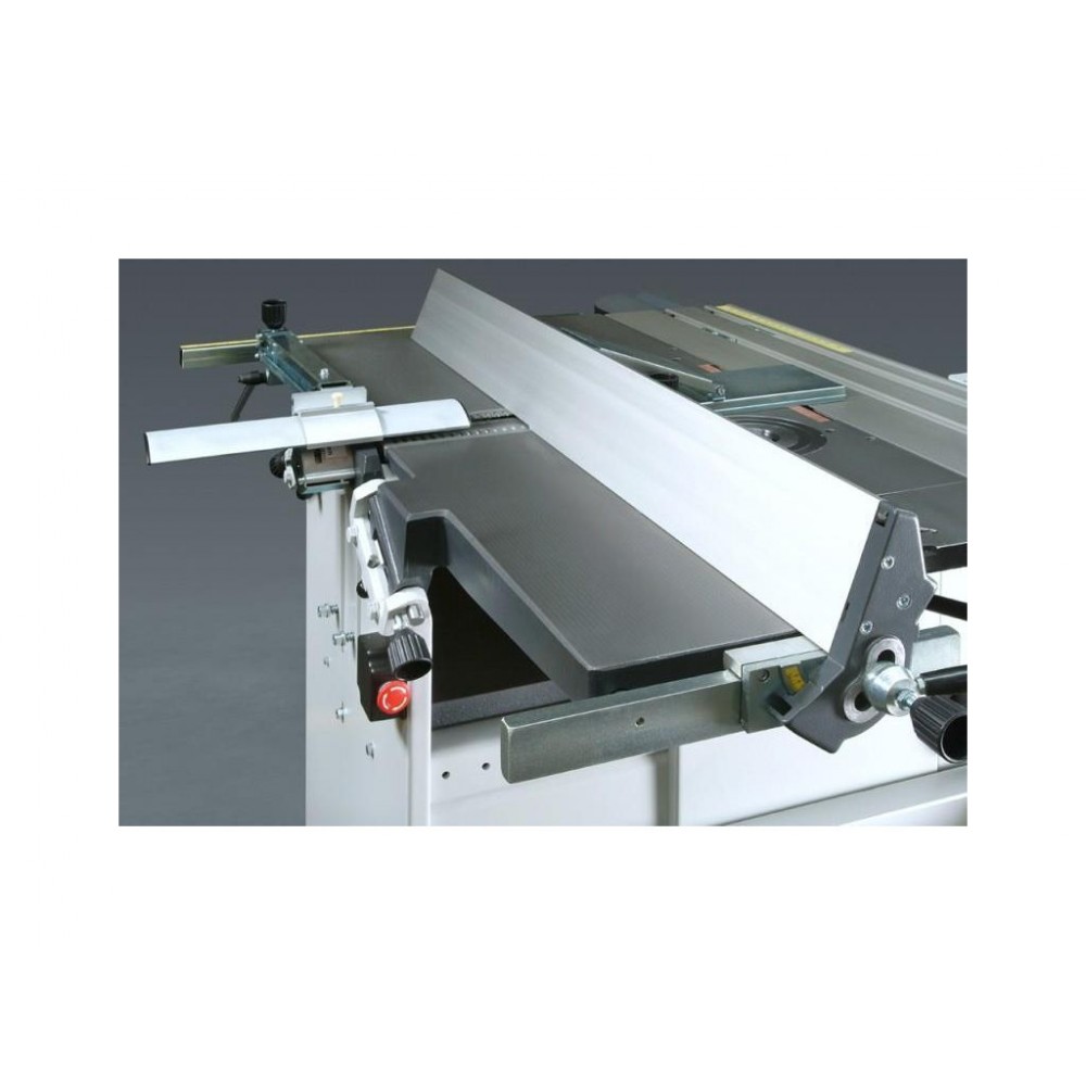Каретка верстата HX PRO 310 додатково оснащена фронтальним столом з підтримуючою телескопічною опорою і поперечної наполегливою лінійкою з 2-ма відкидними упорами. Це дозволяє обробляти на верстаті листові матеріали, також можливе збільшення довжини каретки до 2100 мм