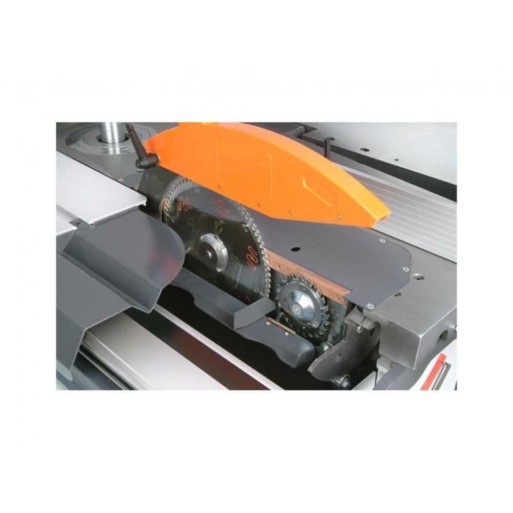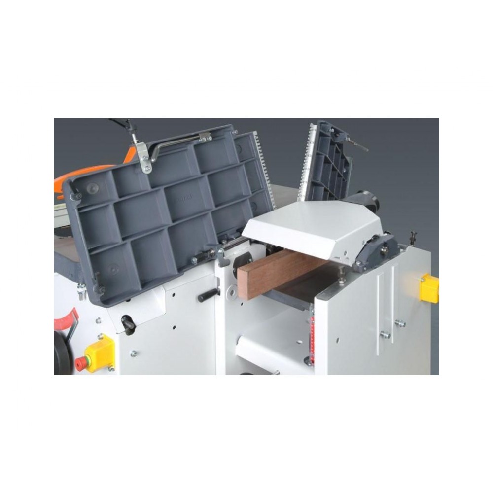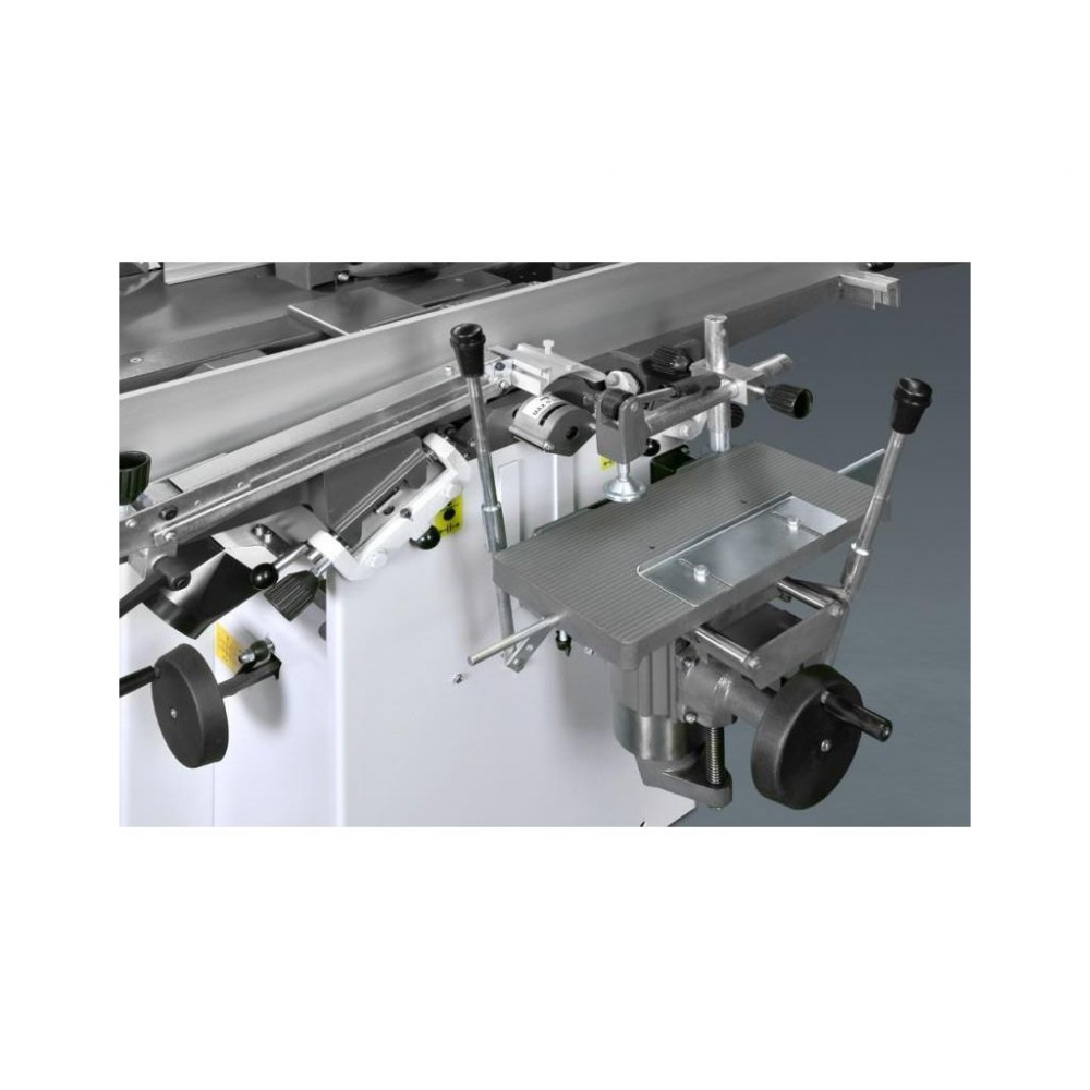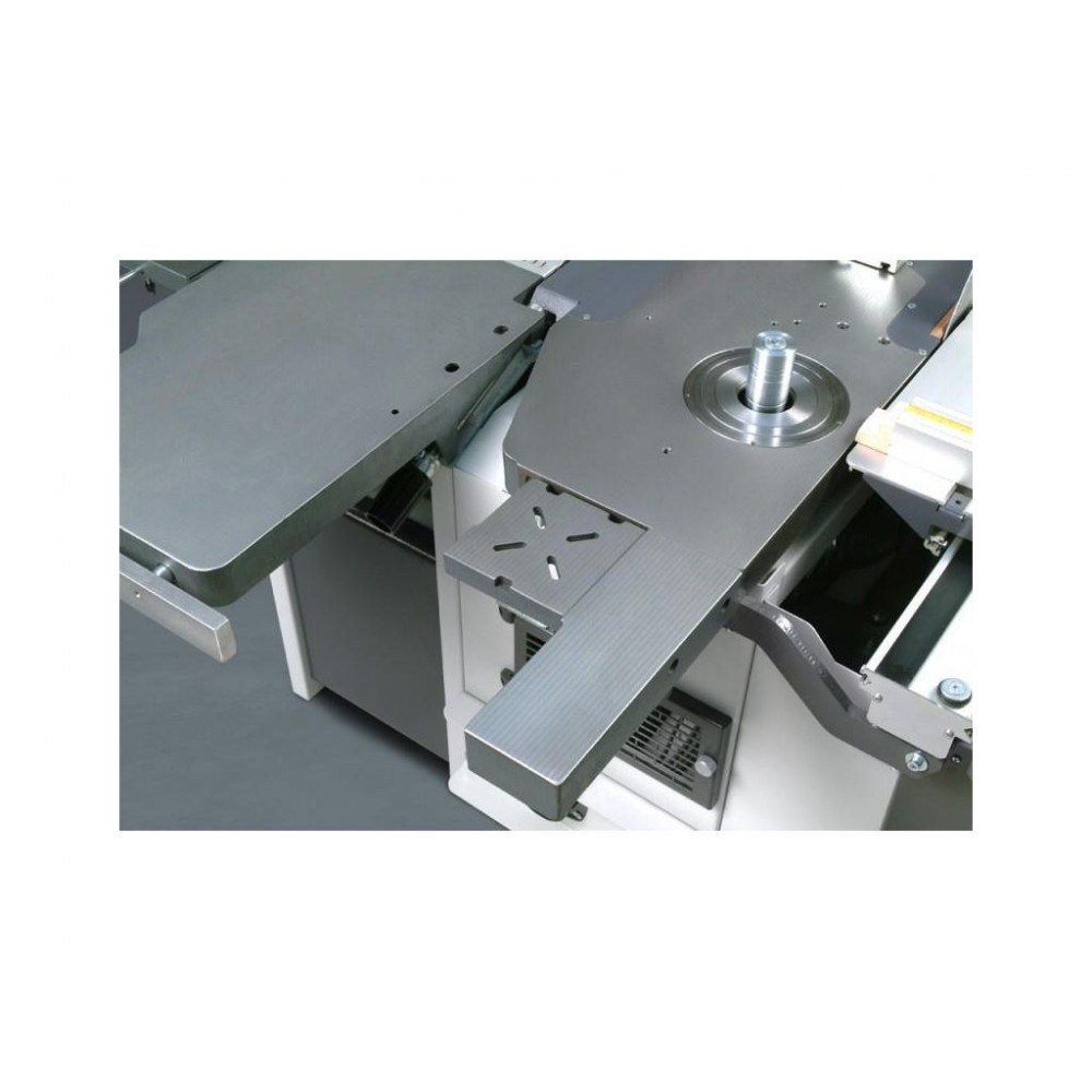 Три двигуна дозволяють пильному, фрезерного і фуговально-рейсмусовому вузлів працювати незалежно, але поперемінно. Перемикач розташований на панелі управління. Базова комплектація включає в себе додаткове обладнання, яке дозволяє найбільш повноцінно експлуатувати верстат.