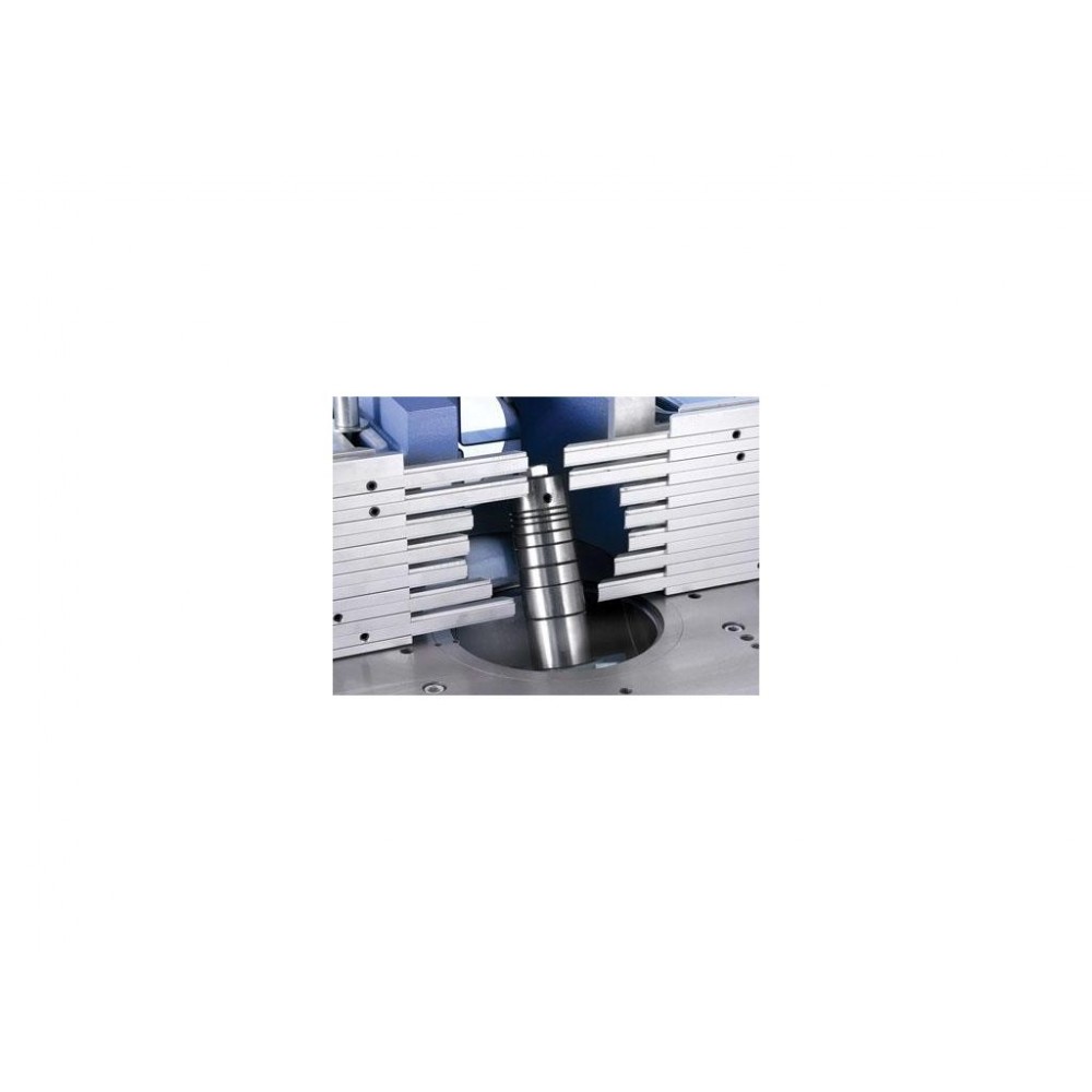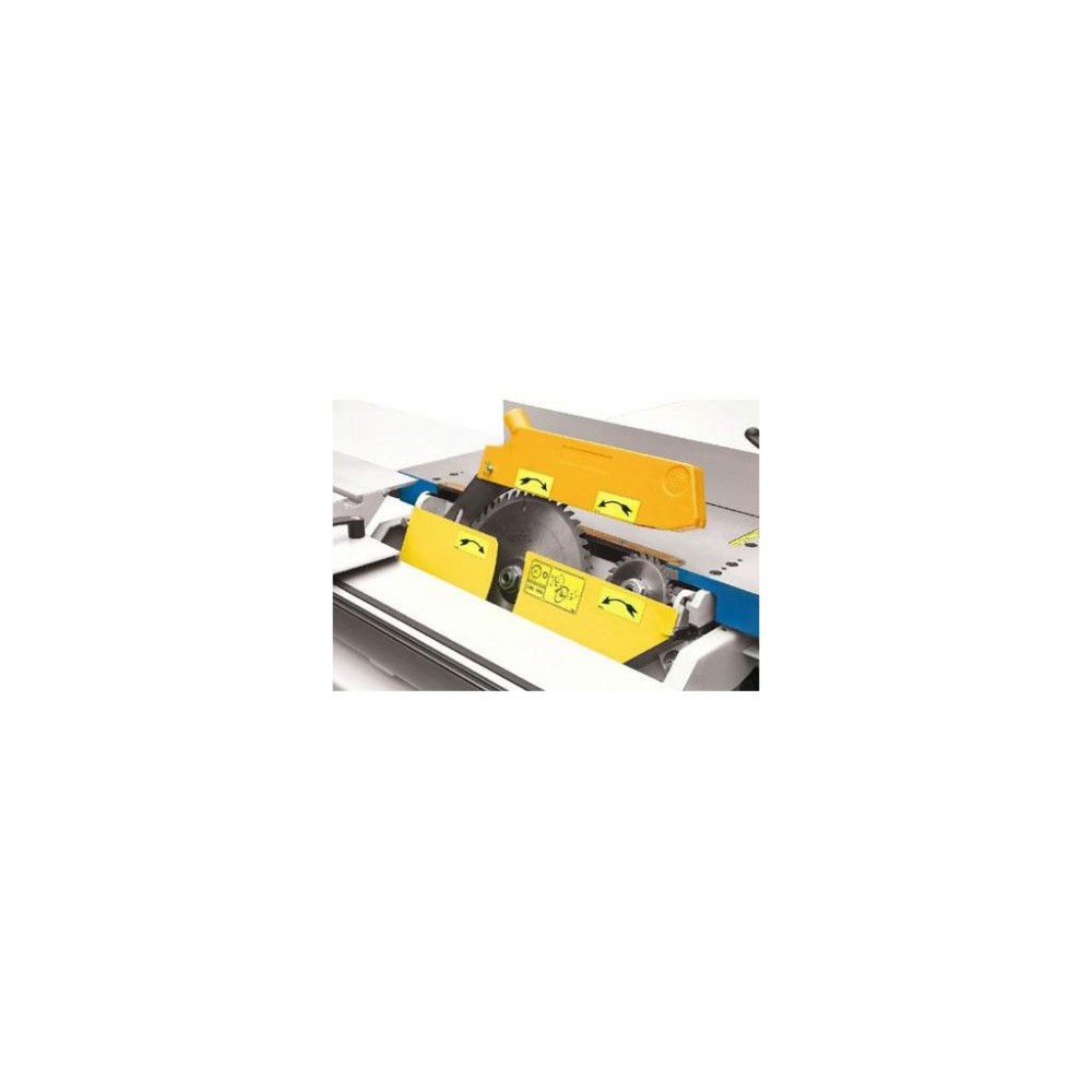 Форматний алюмінієвий стіл із загартованими сталевими напрямними. Телескопічна лінійка 1800 мм із двох повертаються упорів. Лінійка для паралельна різка з микрометрическая налаштування. Способу диска до 45° зі зчитування по шкалу. Діаметр отвору в столі ø260 mm з аспіраційна патрубка під робочого столу. Фрезерний шпиндель нахиляється ззаду Морозової конус МК4 шпинделя. Замінний шпиндель МК 4. Запобіжник для фрези діаметром ø250 mm. Ширина пропилу з паралельною лінійкою 1080 mm.