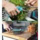 Комплект Gardena Balcony Box - набір ручного інструменту для догляду, пересадки, посадки кімнатних рослин. У набір входить все необхідне для якісного догляду за догляду за горшкові квітами: лопатка, граблі, секатор, щітка і віник. А також бокс для компактного зберігання всього інструменту, який до того ж можна прикріпити на стіну, щоб не займати багато місця.