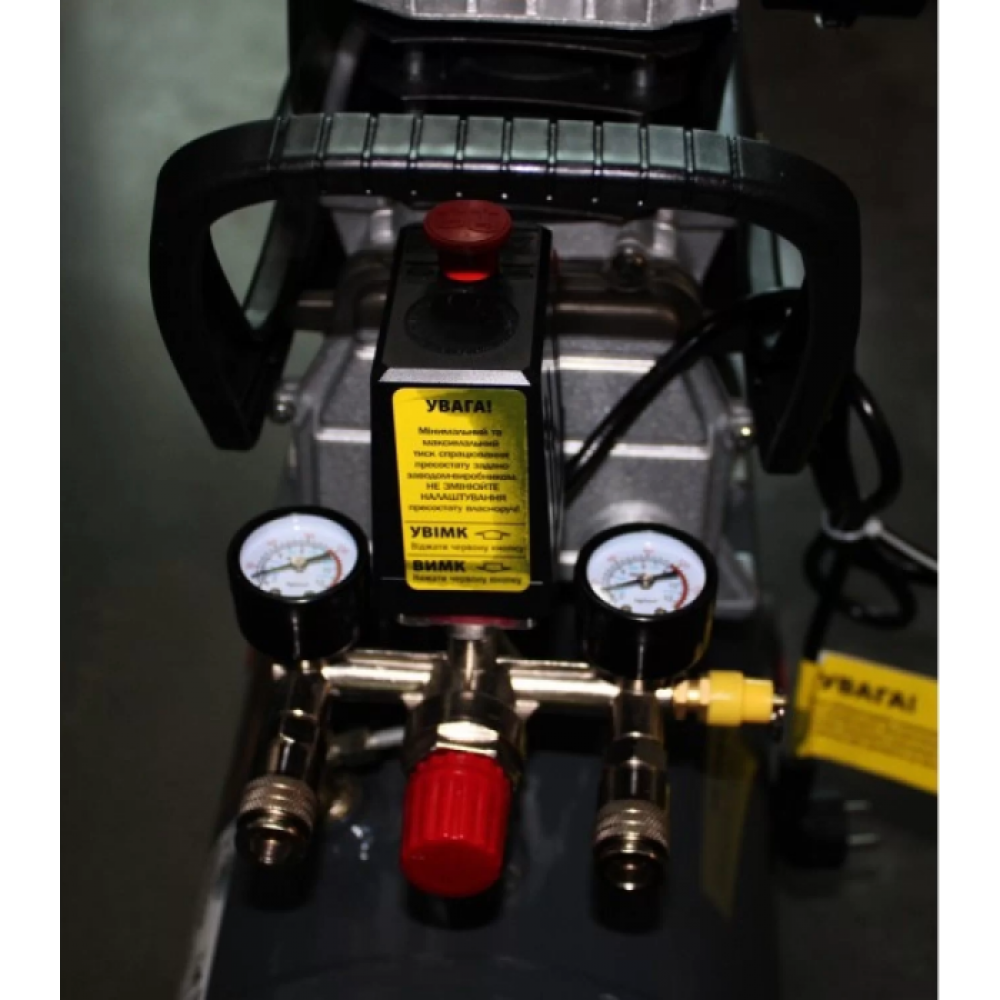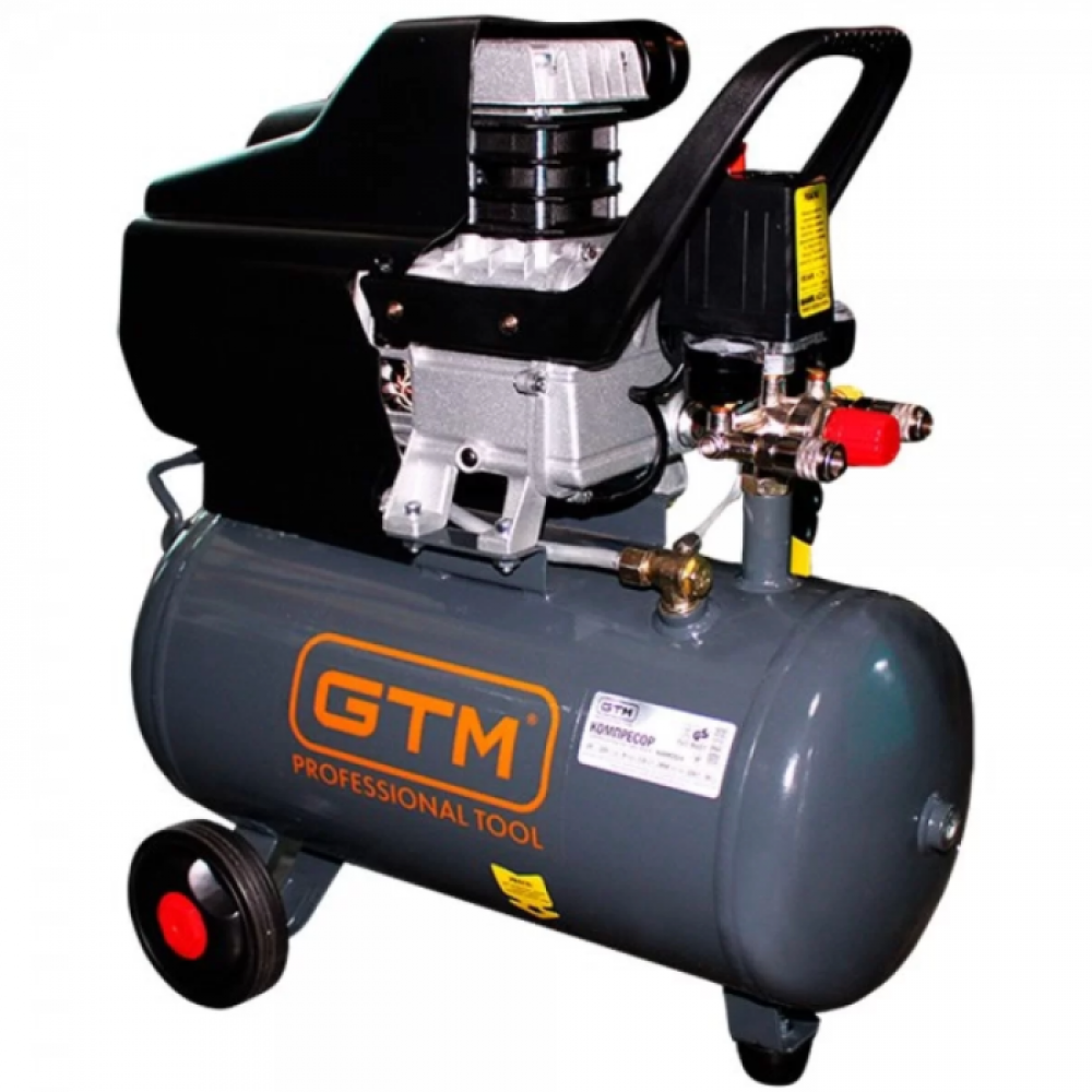 Компресор масляний поршневий GTM KABM2024 має потужність 1,8 кВт, ресивер об’ємом 24 л та продуктивність до 170 л/хв при робочому тиску 8 бар, що робить його зручним для побутового й напівпрофесійного використання.