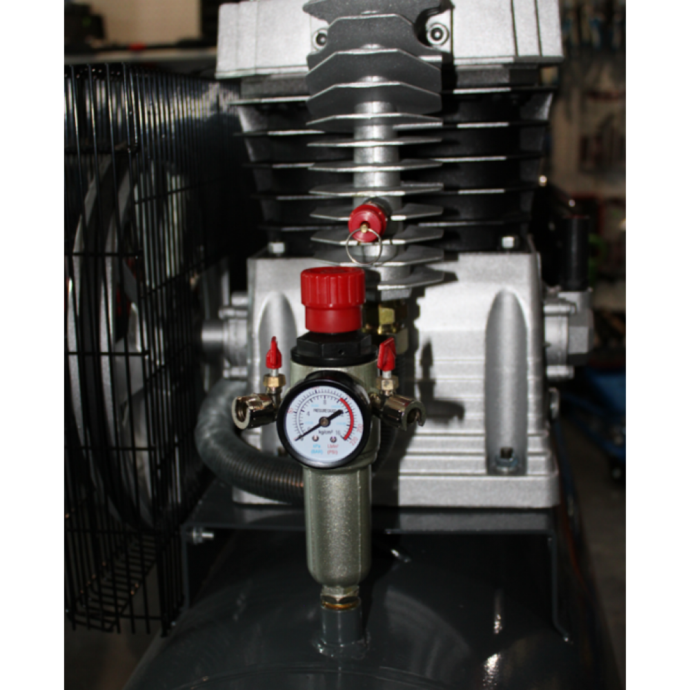 GTM KCH2090-200L - надійний і продуктивний компресор професійного класу з робочим тиском 10 бар. Завдяки високій продуктивності та швидкості накачування підходить для використання в майстернях, на будівельних майданчиках і СТО.Основні переваги компресора GTM KCH2090-200L:Надійний двигун із мідною обмоткою потужністю 4 кВтАктивне примусове охолодження двигуна та великі ребра теплообмінника на поршняхДва поршні зі збільшеним до 90 мм діаметром для більшої продуктивності600 л/хв - максимальна продуктивність на виході компресораСталевий ресивер на 200 л10 бар - робочий тискНадійна автоматикаДва виходи зі швидкознімним з'єднанням2 точних манометраВбудований редукторВхідні повітряні фільтриКлапан аварійного скидання тискуЗахист двигуна за стандартом IP54Захисна сталева решітка для ременяМідний кабель живлення довжиною 1.5 мКолеса і зручна рукоятка для транспортування