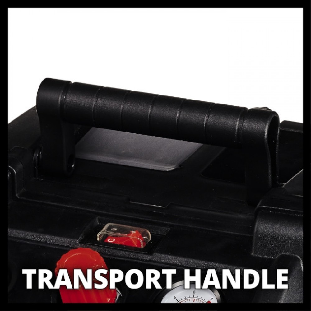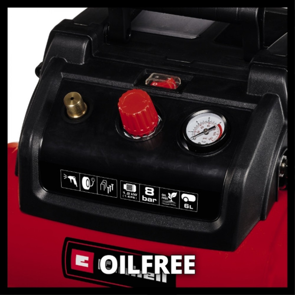 Завдяки цьому дуже мобільному і компактному компресору Einhell TC-AC 190/6/8 OF ви можете виконувати безліч простих робіт, що вимагають стисненого повітря, в домашніх умовах, в саду і гаражі або в кемпінгу. Завдяки наявності ресивера зі стисненим повітрям з 6 літрів, невеликі роботи можуть бути виконані без нового запуску двигуна компресора. Оскільки повітряний компресор працює без змащення мастилом, пристрій не містить мастила і не вимагає обслуговування. Таким чином, компресор можна зручно транспортувати в будь-якому положенні. Тиск компресора TC-AC 190/6/8 OF можна регулювати для різних завдань від 0 до 8 бар за допомогою регулятора тиску. Робочий тиск регулюється на редукторі тиску і відображається на манометрі. Завдяки запобіжному клапану оператор оптимально захищений. Ергономічна конструкція забезпечує зручність під час роботи і зручність при транспортуванні. Ніжка виконана у вигляді присоски для безпечної роботи, а зручне намотування кабелю піклується про швидку впорядкованість після завершення роботи. Ресивер має 10-річну гарантію від корозії. Безмасляний мотор, який не обслуговуєтьсяМобільний компресор з ресивером обємом 6 літрівЕргономічна конструкція і ручка для легкого транспортуванняЗручний намотувач кабелю на корпусіТиск до 8 бар, можна встановити за допомогою редуктора тискуМанометр і швидкозмінна муфта з можливістю регулювання тискуНожки з присосками10 років гарантії від корозії ресивераЗапобіжний клапан