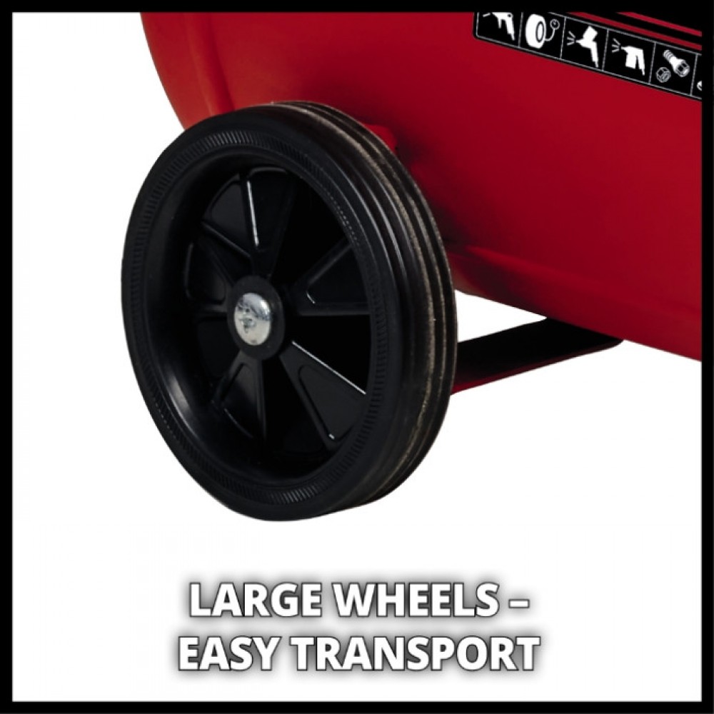 TC-AC 270/50/8 — це універсальний компресор із робочим тиском 8 бар, який ідеально підходить для широкого діапазону робіт зі стисненим повітрям. Регульований робочий тиск можна точно встановити за допомогою редуктора тиску та відображається на великому манометрі. Нерегульований тиск в ресивері також можна побачити на манометрі. Різноманітні інструменти зі стисненим повітрям можна підключити швидко й без інструментів завдяки швидкому з’єднанню. 50-літровий бак забезпечує достатній запас повітря, щоб без проблем виконувати трудомістку та тривалу роботу. Постійне змащування маслом насоса забезпечує довговічність компресора. Зворотний і запобіжний клапани забезпечують необхідну безпеку при експлуатації. Конденсат можна легко та безпечно злити з баку за допомогою дренажного гвинта. Віброгасильна підставка запобігає вібрації, забезпечує надійне стояння та знижує шум. Компресор швидко готовий до використання і його легко транспортувати завдяки практичній транспортувальній ручці та двом прогумованим колесам. На міцний ресивер поширюється 10-річна гарантія від корозії.50-літровий бак забезпечує достатній запас повітря.Масляна змазка забезпечує довговічністьЗа допомогою регуляторів тиску можна регулювати до 8 барМанометр і швидкороз'єм для регулювання робочого тискуВеликий манометр для нерегульованого тискуКолеса та ручка для транспортуванняВібраційна підставка забезпечує надійне стоянняБезпечне використання завдяки зворотним і запобіжним клапанамДренажний гвинт забезпечує зручне обслуговуванняГарантія 10 років від корозії бака