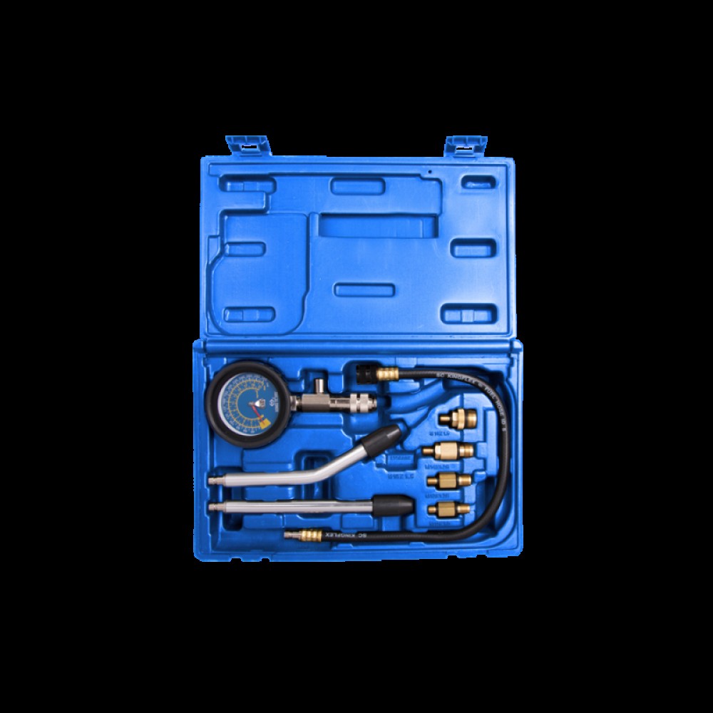 Компресометр бензиновий, набір з гнучкою, 2-ма жорсткими насадками та перехідниками Параметри Значення Тип компресометра Бензиновий Вага 1.3 Компресометр бензиновий Набір для вимірювання компресії бензинових двигунів легкових автомобілів та мотоциклів Компресометр дозволяє діагностувати стан поршневих кілець, клапанів та головки блоку. 1 - Манометр зі швидким роз'ємом та кнопкою скидання показань Покази манометра: 0 - 21 кг/см2 (атм) 1 - Гнучкий шланг високого тиску 400 мм зі швидкознімним роз'ємом 1 - Пряма трубка 130 мм з універсальним притискним конусним роз'ємом та швидкознімним штуцером 1 - Трубка 130 мм загнута 45° з універсальним конусним притискним роз'ємом і швидкознімним штуцером 4 - Перехідника зі швидкознімними штуцерами: М10 х 1, М12 х 1,25, М14 х 1,25, М18 х 1,5