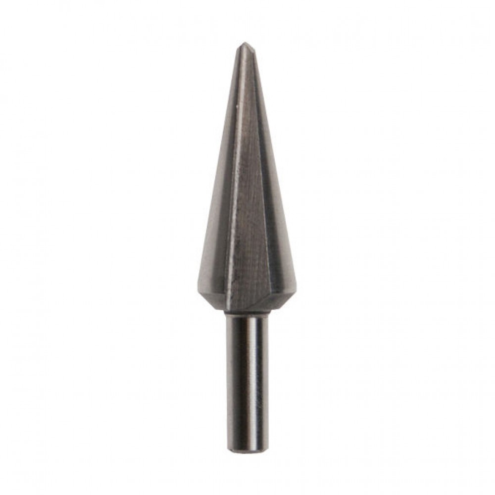 - Тип свердла – конічне (ступінчасте): На відміну від звичайних спіральних свердел, конічне свердло має кілька діаметрів (ступенів) на одному робочому полотні. Це дозволяє свердлити отвори різних діаметрів, поступово збільшуючи їх, без необхідності змінювати свердло. Це ідеально підходить для розсвердлювання існуючих отворів або створення нових з високою точністю.