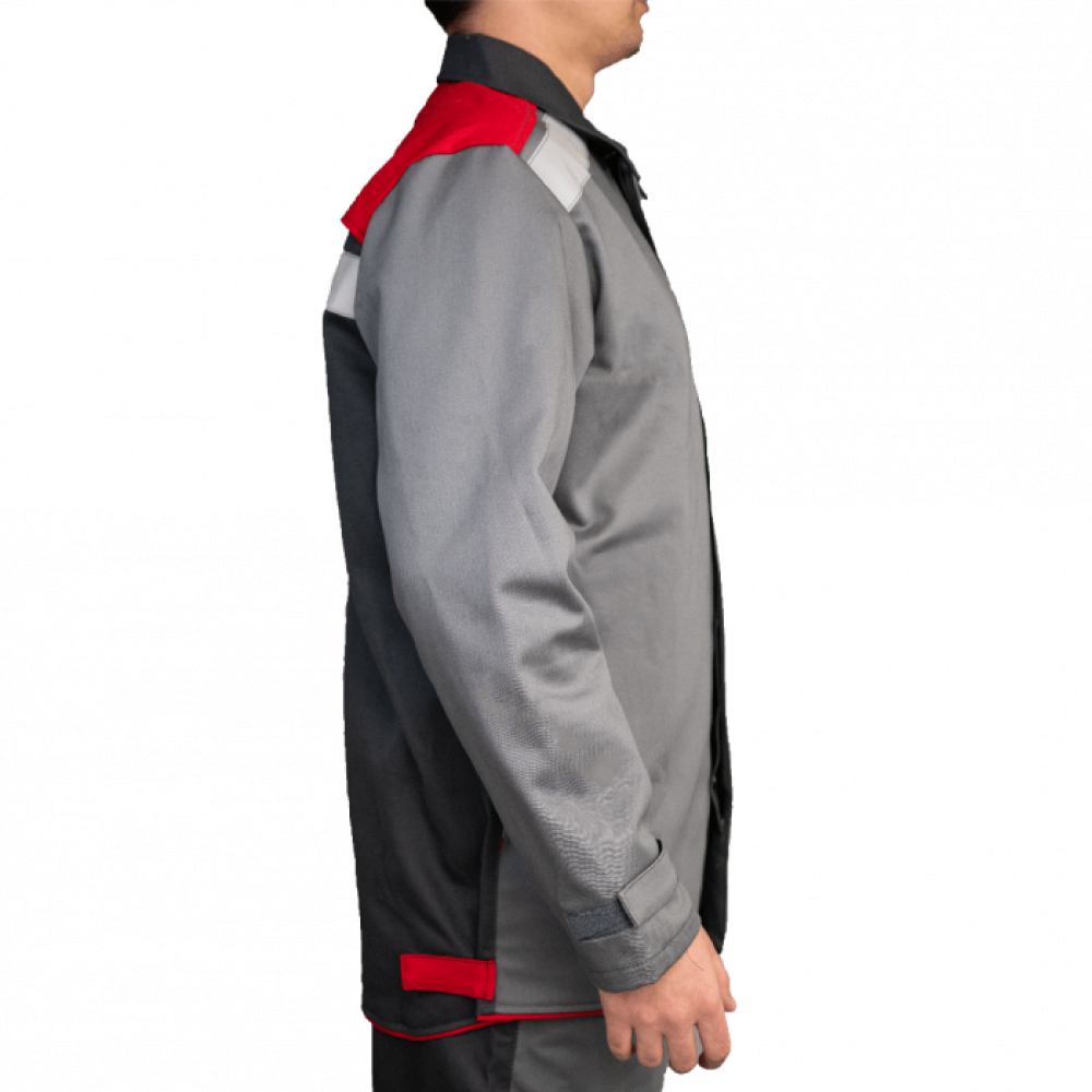Призначений для робіт на виробництві в умовах підвищених температур Костюм Fenix розроблений спільно з "Товариством зварників України", де були враховані всі побажання і зауваження для зручності і безпеки в роботі. Передня частина куртки зроблена з подвійної тканини: нижній шар – тканина Грифон, верхній шар – Титан (щільність передньої частини костюма 740 г/м2). Стандарти: EN 13688, EN ISO 11612, EN ISO 11611, EN ISO 20471, а також відповідає основним вимогам Регламенту ЄС 2016/425 «Засіб Індивідуального Захисту». Особливості:- захисна тканина Титан завдяки атласному переплетенню ниток (Satin 4/1) має гладку поверхню, що сприяє скочуванню крапель розжареного металу по всій поверхні без пропалювання;- мала вага, зручно використовувати в будь-який сезон;- сертифіковані вогнестійкі тканини і матеріали;- дві бічні кишені на куртці - для рукавичок зварника і дві внутрішні - для особистих речей;- фіксація відкладного коміра на куртці коли потрібно додатково захистити шию;- регулювання манжетів на рукавах – зручність при одночасному використанні з крагами зварника;- шви прошиті кевларовими нитками – стійкість до розривів і прогорання по шву під час робіт;- на спині два отвори для вентиляції надійно заховані під кокеткою;- зручний пояс куртки регулюється липучками;- термостійка фурнітура;- центральна застібка куртки на ґудзиках, прихована клапаном;- закріпки підсилюють міцність;