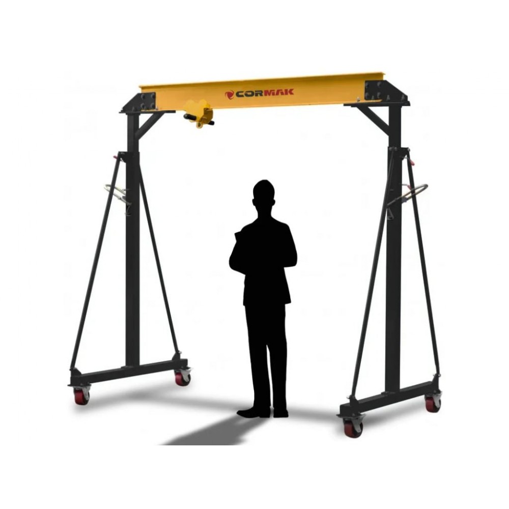Козловий кран CORMAK PK1 - це універсальний пристрій для піднімання вантажів вагою до 1 тонни. Конструкція виготовлена з якісних матеріалів, надзвичайно міцна, надійна та стійка до скручування. Додаткові поперечні стійки забезпечують високу стійкість і стабільність.