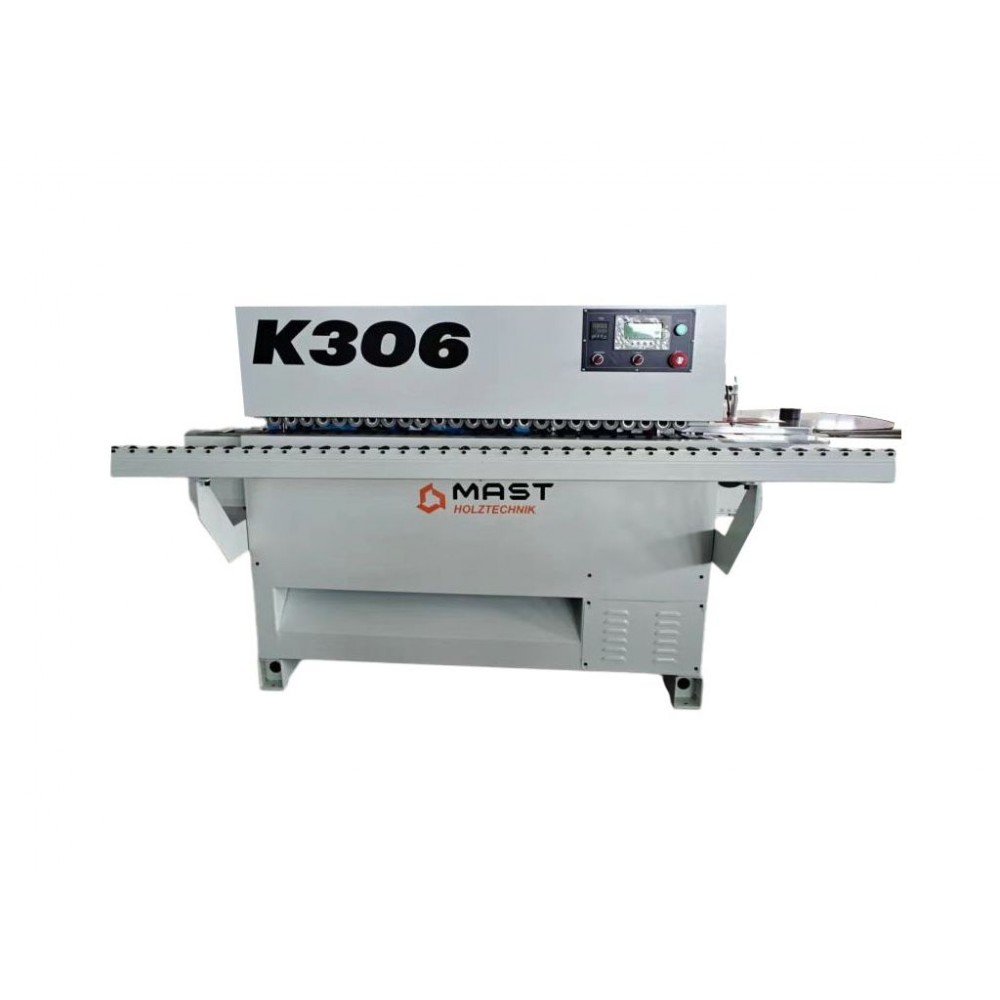 Кромкооблицювальний верстат MAST Holztechnik K306 якісно виконує прямолінійну поклейку меламінової, ПВХ та ABS кромки на меблеві деталі з ЛДСП, МДФ і фанери. Оснащений основними робочими вузлами. Пульт керування українською мовою забезпечує зручне і просте управління кожним вузлом.