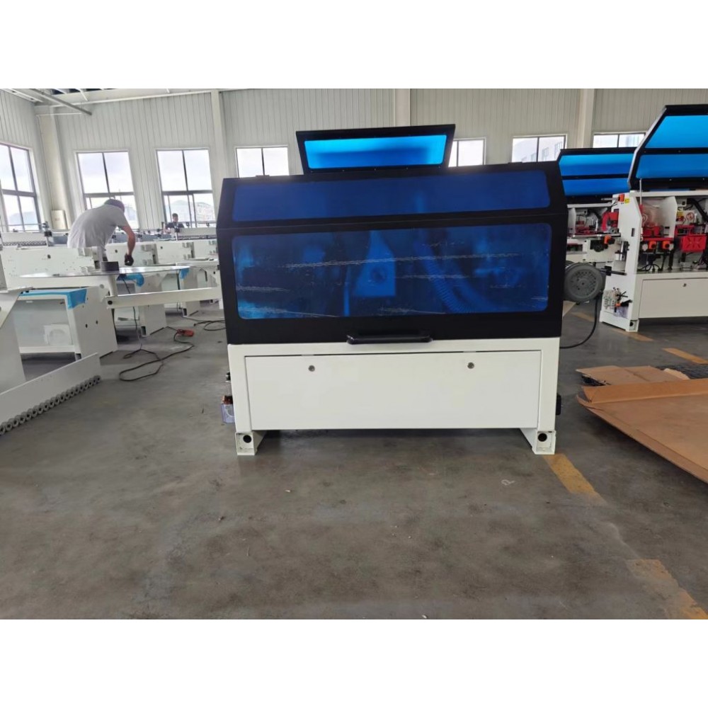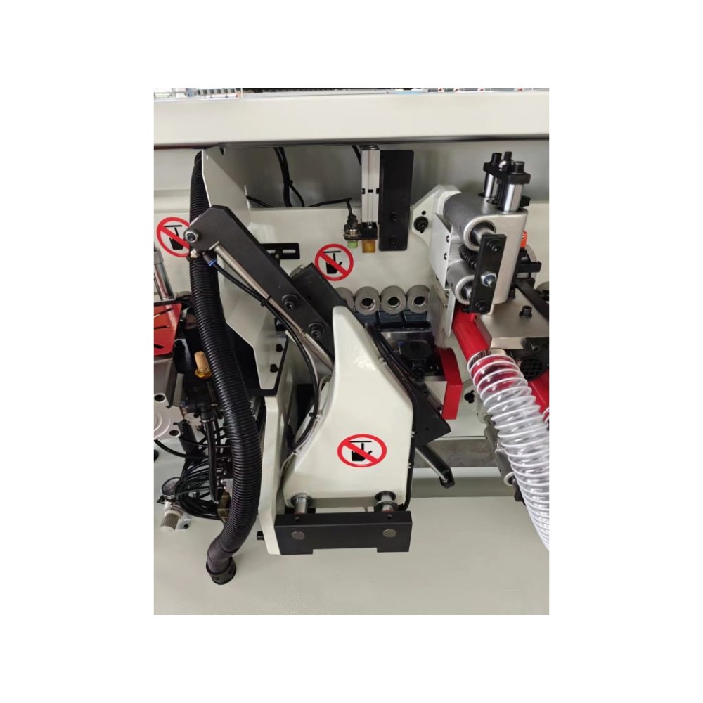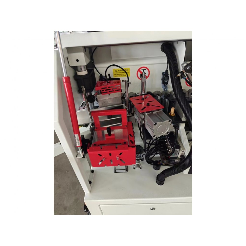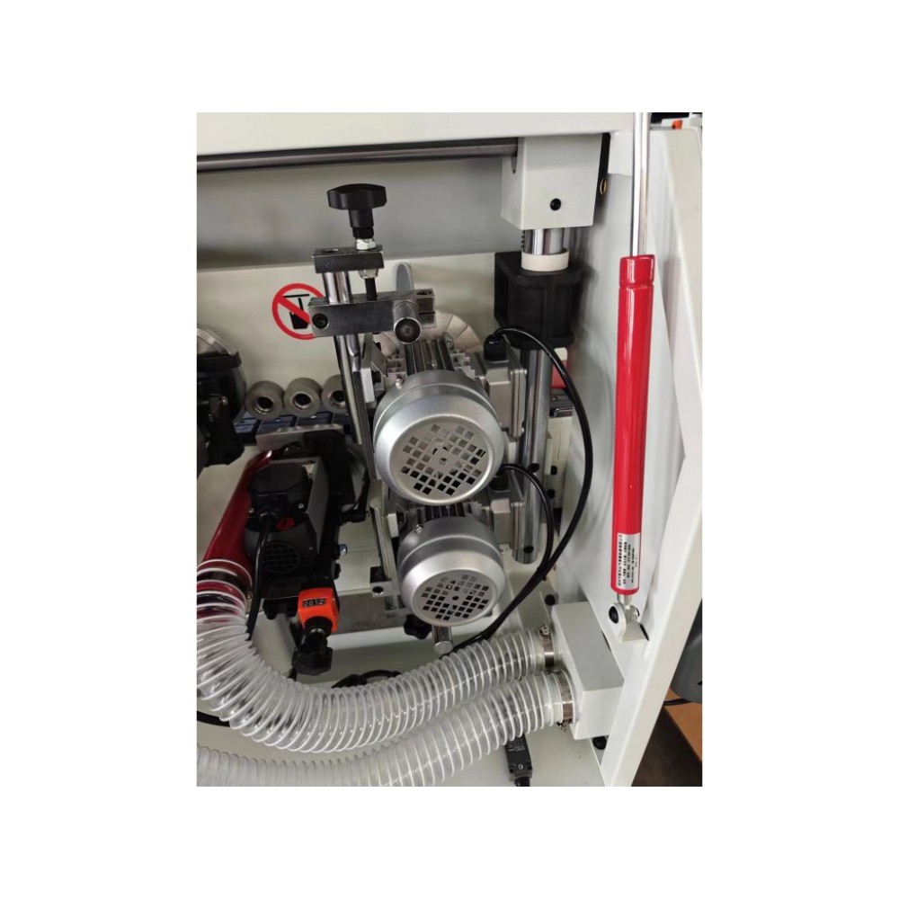Потужність 4 кВт і швидкість подачі заготовки 8 м/хв забезпечують ефективну роботу верстата на штучних і дрібносерійних виробництвах. Контроль температури клею і точне регулювання його кількості гарантують акуратний клейовий шов і високу якість роботи.