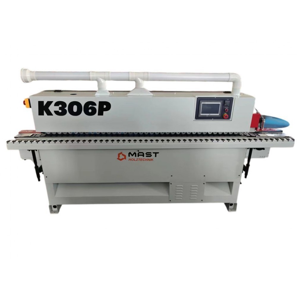 Кромкооблицювальний верстат MAST Holztechnik K306Р прохідного типу призначений для прямолінійної поклейки ПВХ, ABS та меламінових кромок товщиною до 3 мм на меблеві деталі з ЛДСП, МДФ і фанери. Оснащений основними робочими вузлами, що дає змогу проводити повний цикл обробки за один прохід. Має просте і зрозуміле управління кожним вузлом за допомогою пульта керування Тачскрін (Delta) з україномовним інтерфейсом.