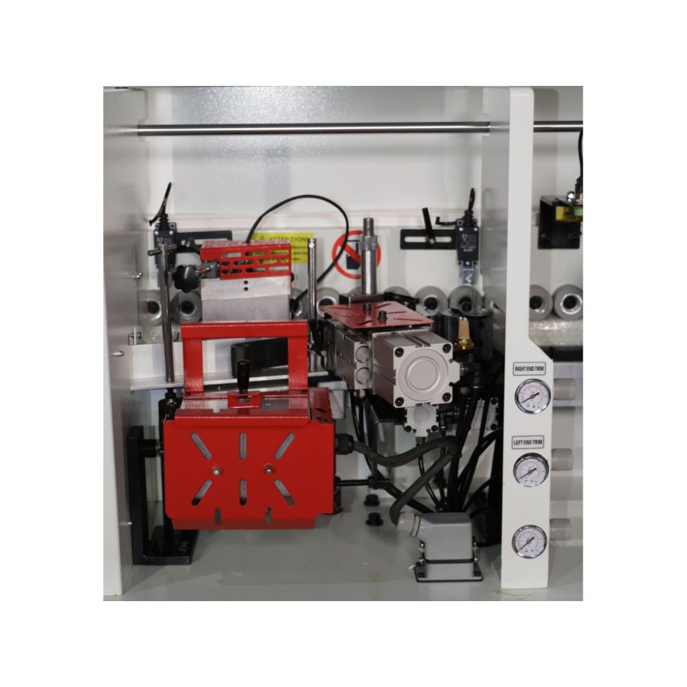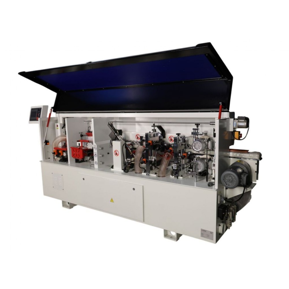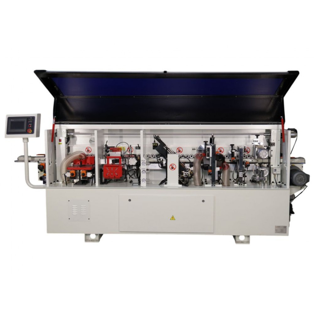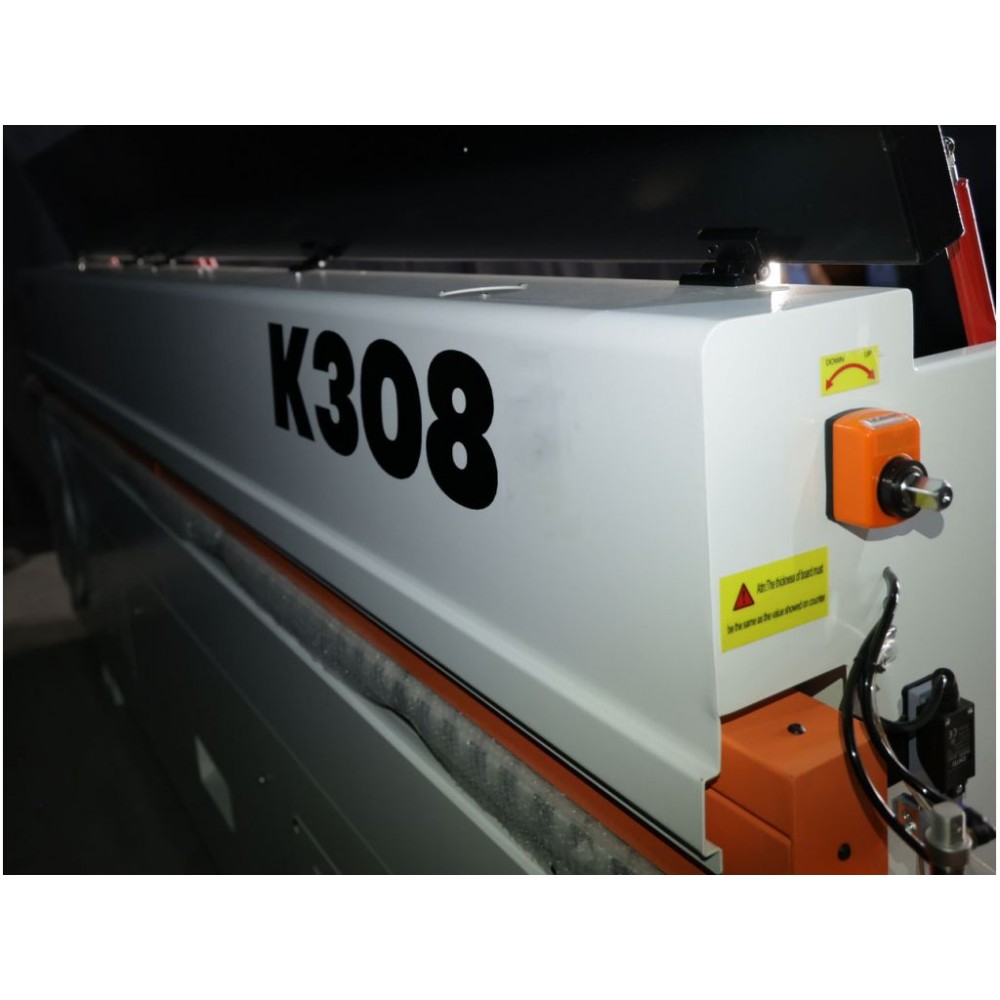 Автоматичний 7-операційний кромкооблицювальний верстат MAST Holztechnik K308 виконує прямолінійну поклейку меблевих деталей з МДФ, ЛДСП і фанери кромкою ПВХ, ABS та меламін товщиною до 3 мм. Оснащений пультом управління Тачскрін (Delta) з інтерфейсом українською мовою, що забезпечує легке і зрозуміле керування кожним вузлом.