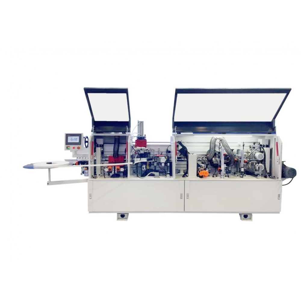 Перевагою моделі є можливість роботи з будь-яким типом клею, зокрема, EVA і PUR. Підйом/опускання притискної балки здійснюється вручну, налаштування верстата на іншу товщину деталі - з панелі керування. Для контролю продуктивності і витрати матеріалів цей автоматичний кромкооблицювальний верстат оснащений лічильником кількості деталей і довжини кромки.