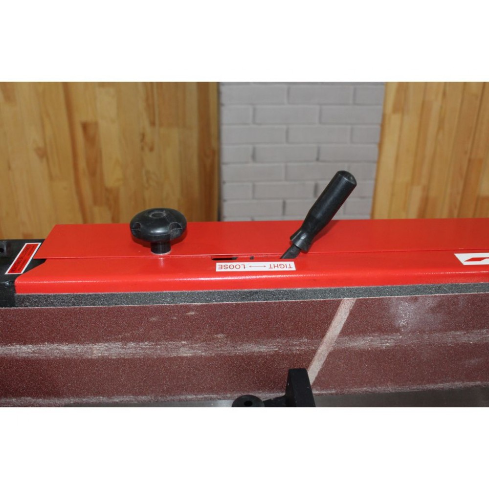 Комплект поставки: тумба з ящиком, що замикається для зберігання, шліфувальна стрічка, кутовий упор, поздовжній упор.